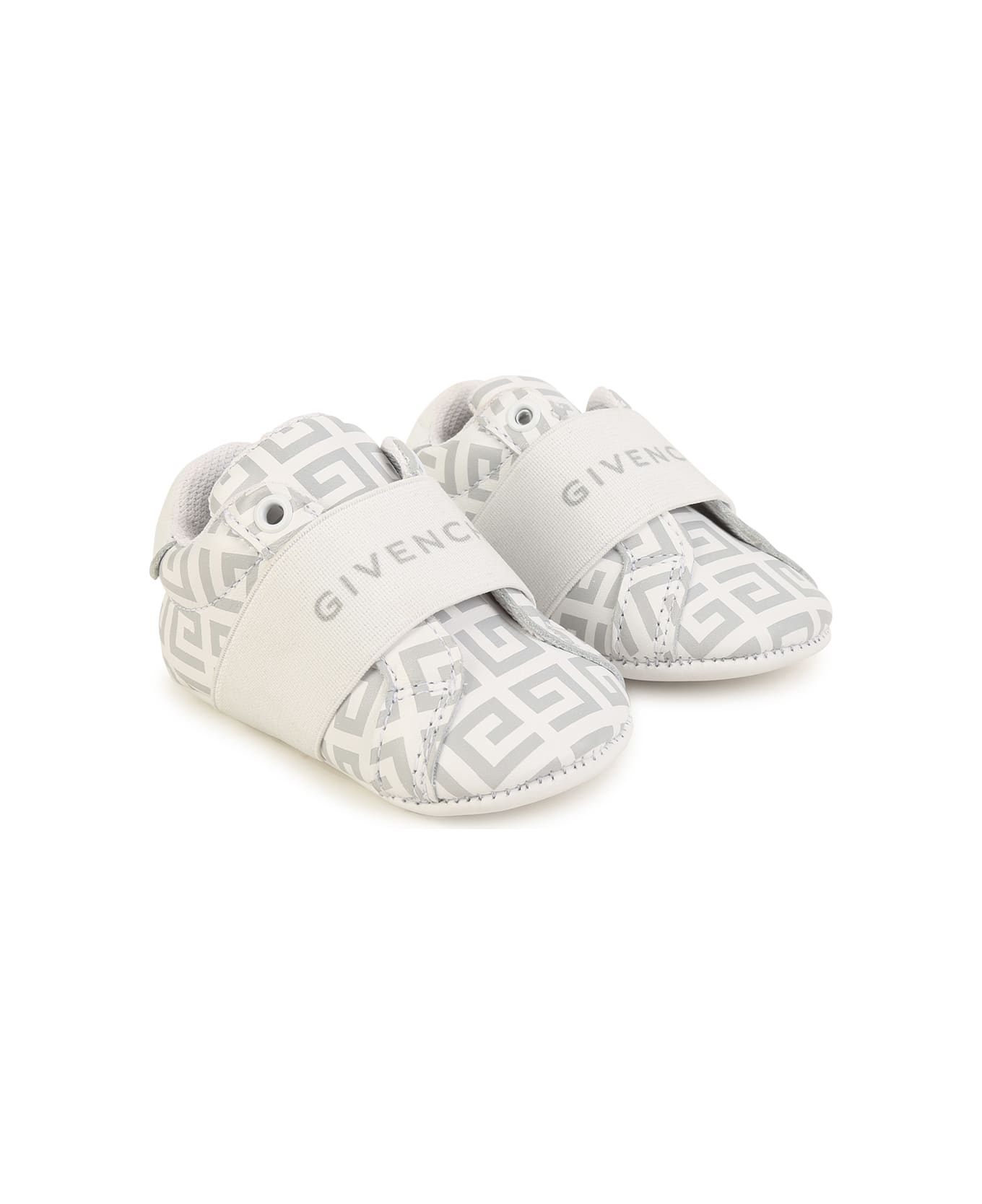 GIVENCHY Kids sneakers for baby boys made of white leather with all-over printed grey 4G pattern and white elastic band finished with contrasting logo. Slip-on design. Composition: Composition:, 100% Leather