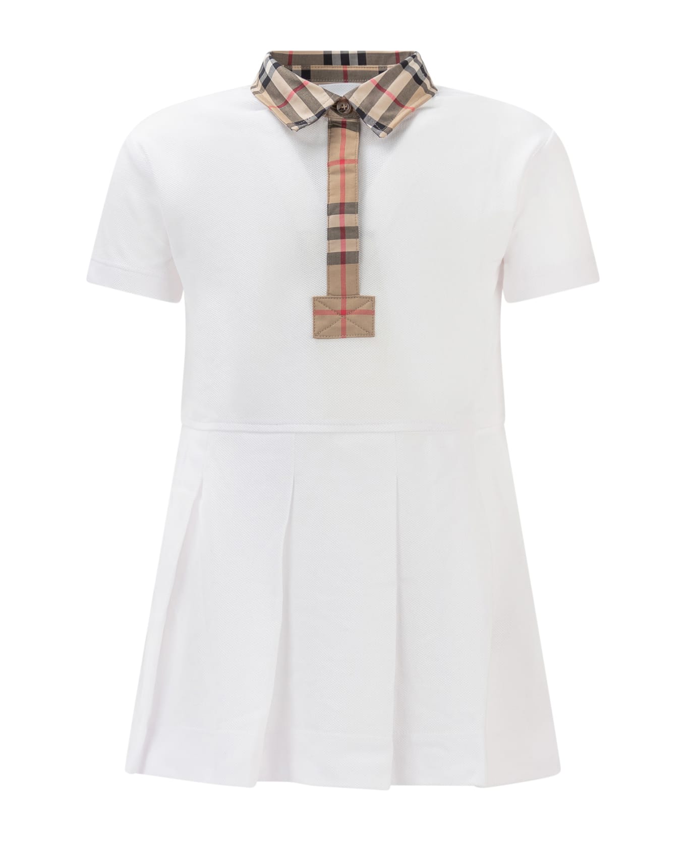 White dress. Short sleeves. Collar with check print. Hidden buttons on the front. Pleated skirt. Patch logo on the back. Composition: Reference Size In Months And Years.outside:, 100% Cotton