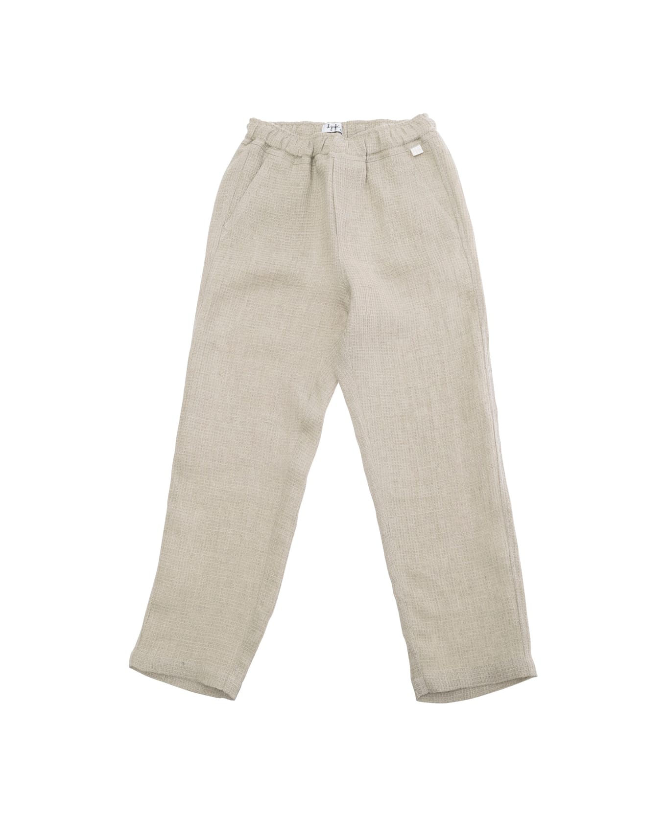Beige Pants With Patch Logo On The Front And Elastic Waist In Linen Boy