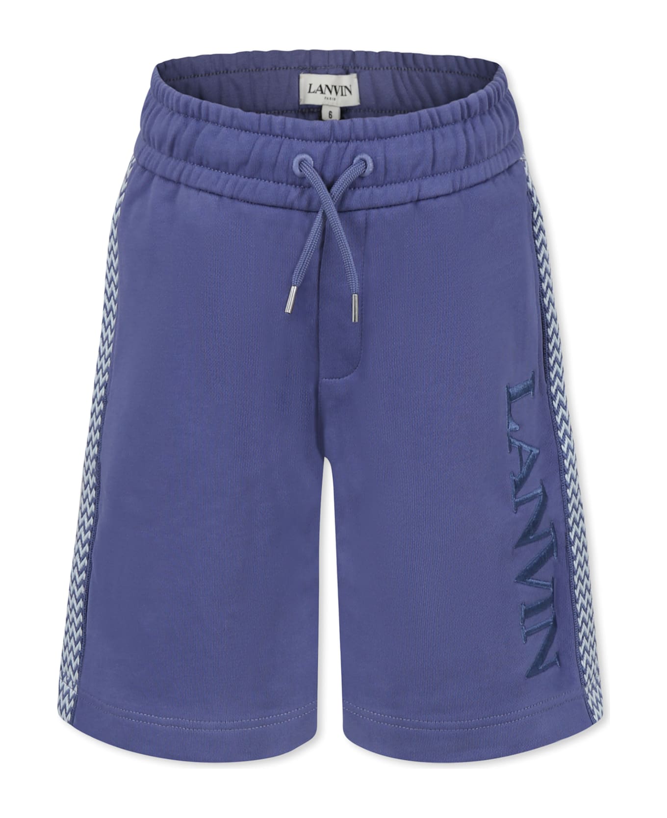 Green shorts from the French brand Lanvin Petite, in brushed organic cotton, with elasticated waist, drawstring, side bands with Curb braid, side pockets and a pocket on the back. They are embellished with an embroidered logo on one leg and a rubber logo patch on the back.