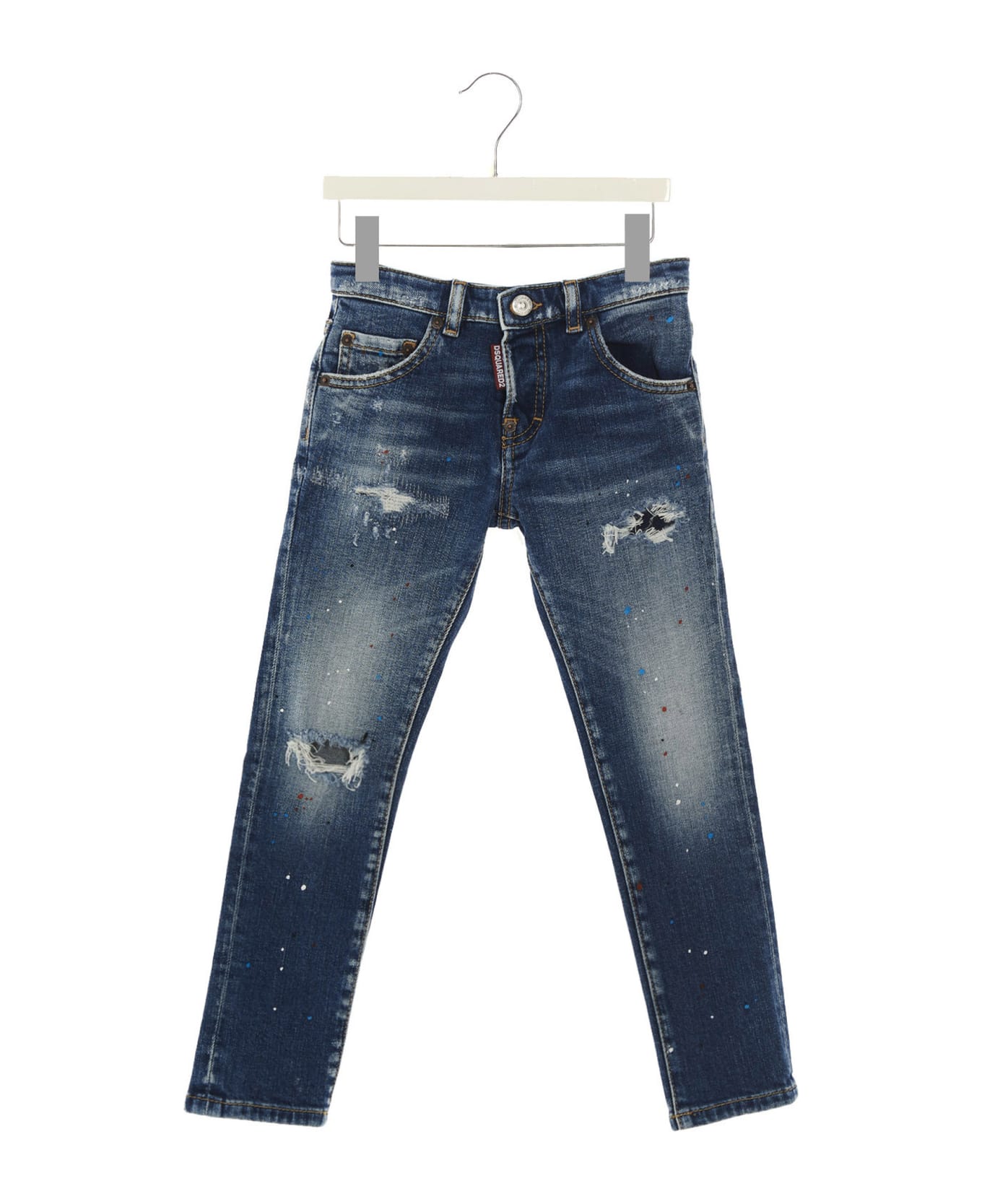 'Cool guy' cotton denim jeans with used-effect details, paint spots, a button closure, five pockets and a leather logo tag. Composition: 99% cotton 1% elastane