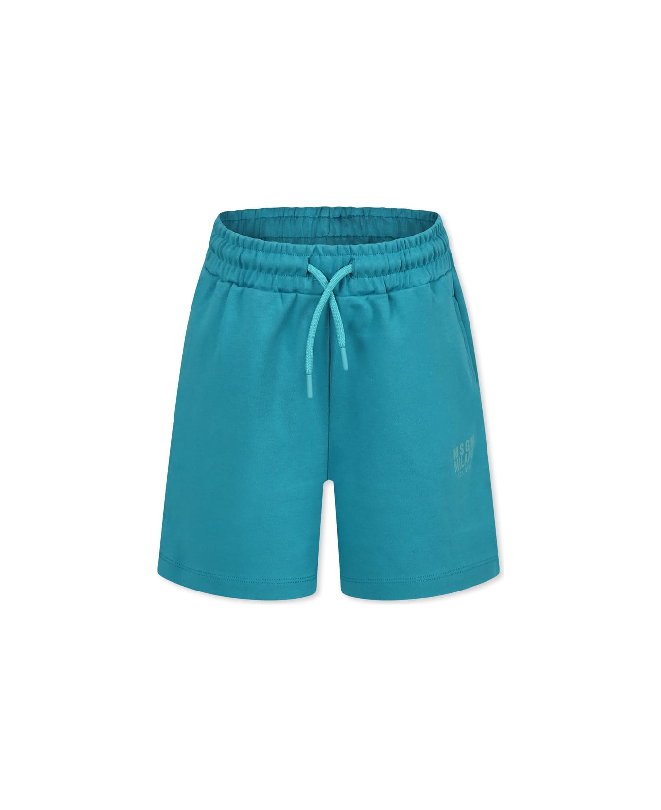 Green shorts in brushed cotton, with elastic waist, drawstring and side pockets. They are embellished with MSGM Milano logo on one leg and logo patch on the back.