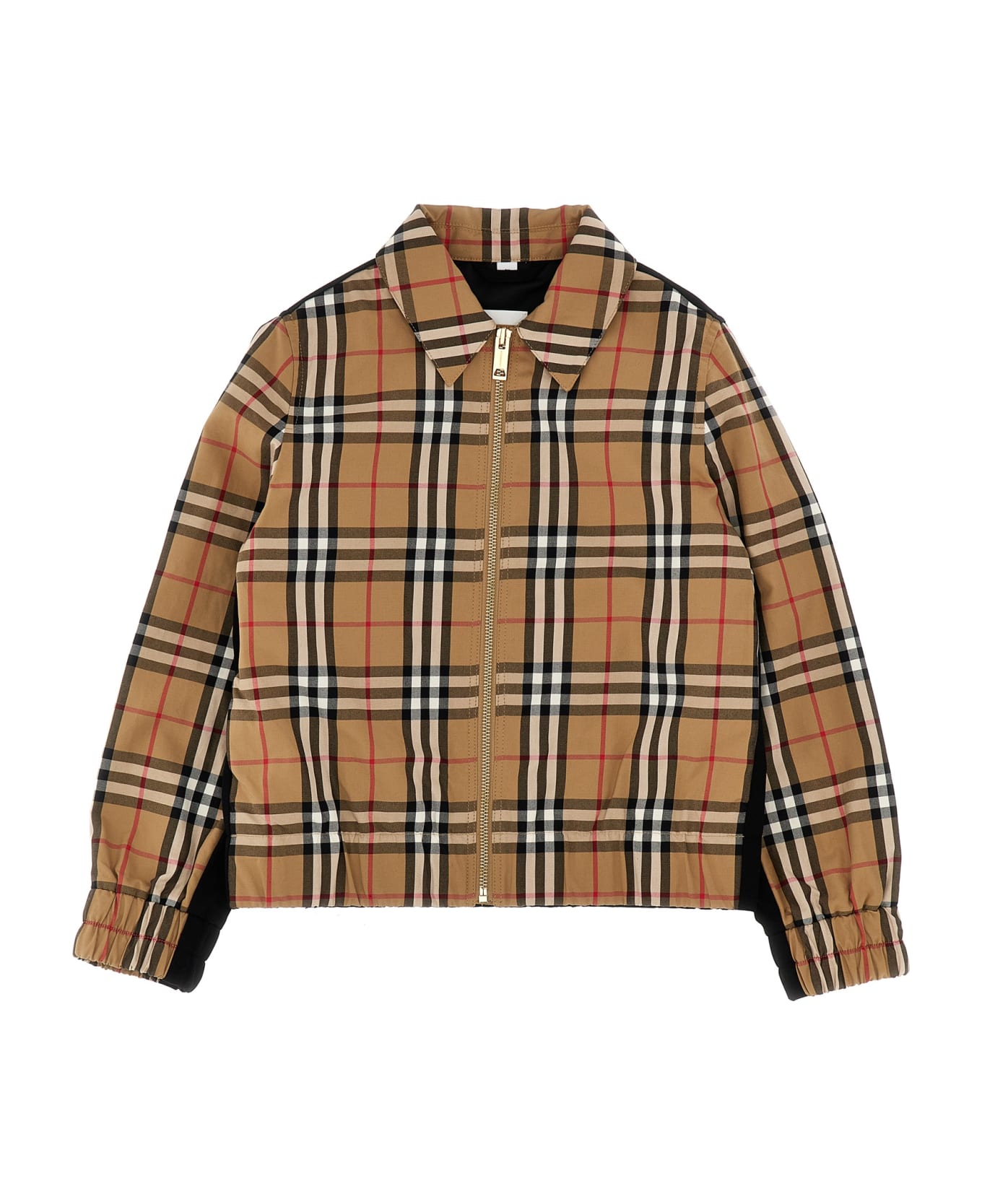 Cotton jacket with front check print, solid color at the back, a zip closure, pockets, long cuffed sleeves and aelastic hemline. Composition: 100% cotton