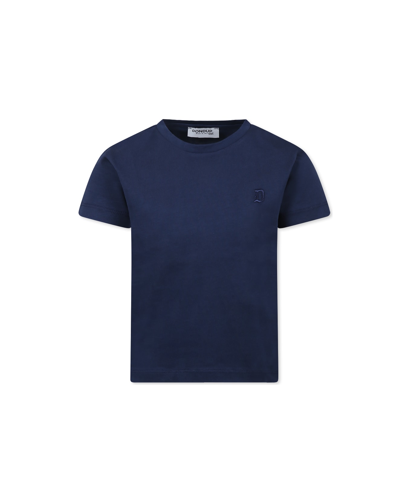 Blue cotton t-shirt, with short sleeves and ribbed crew neck. It is embellished with logo embroidered on the chest.