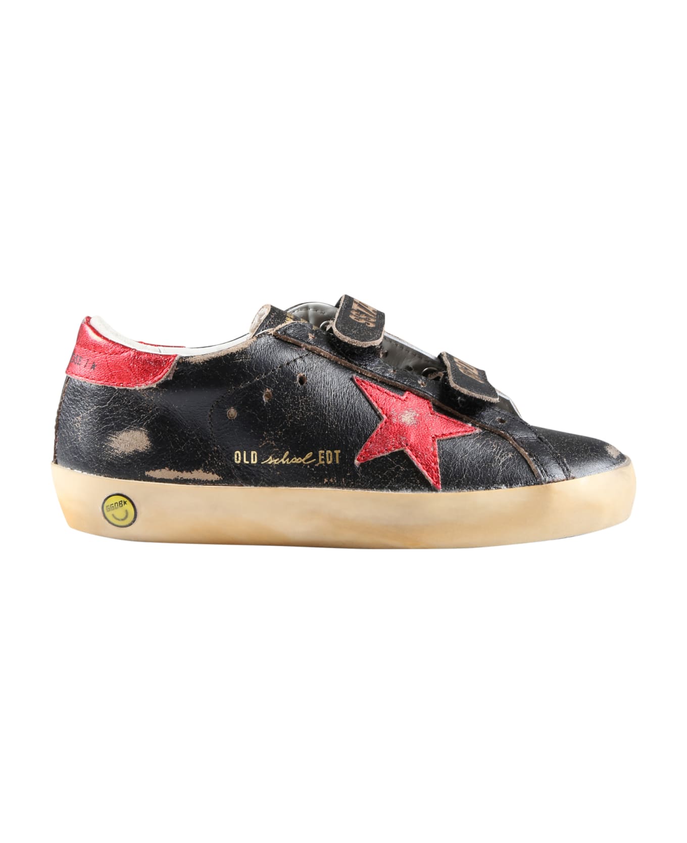 Brown sneakers with beige rubber sole and velcro closure on the top. They are embellished with iconic all-over dirty effect, side red star, logo on the top and on the back.