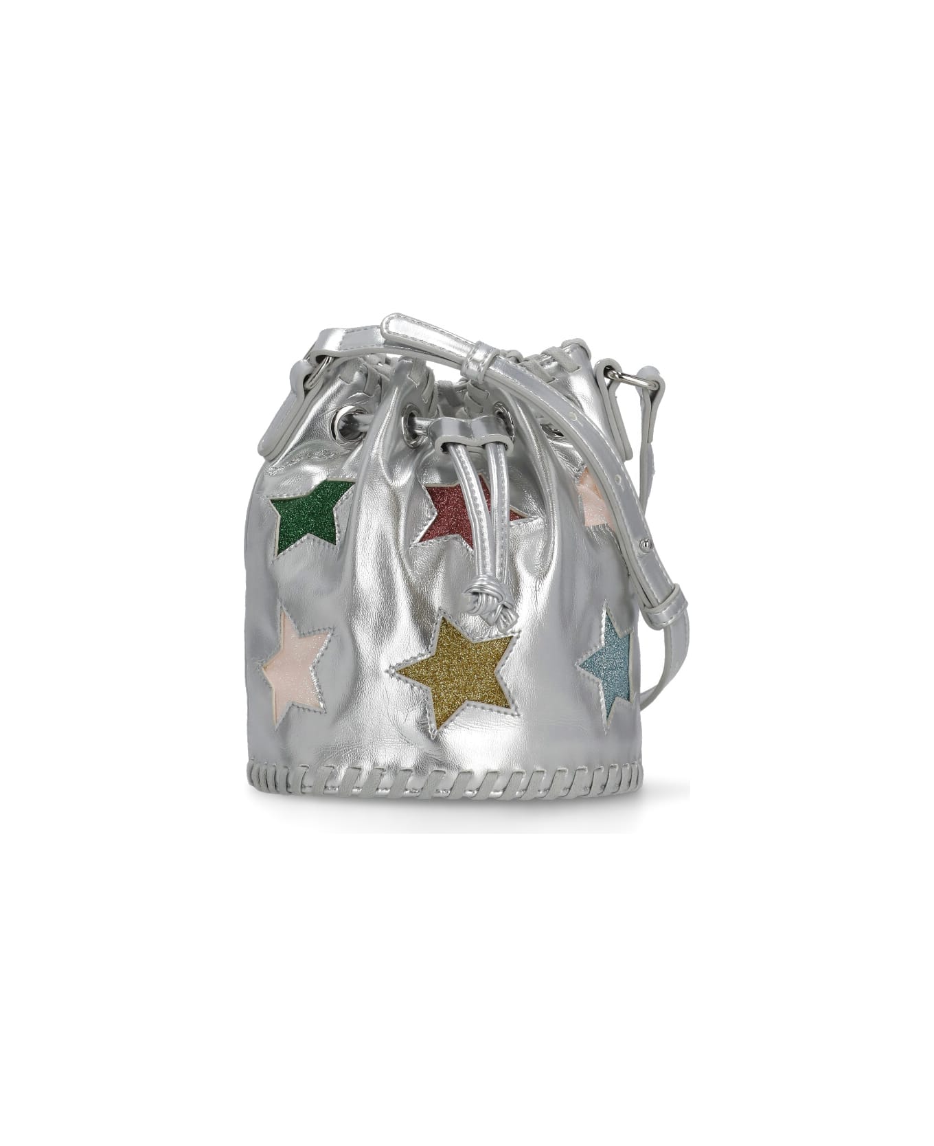 - Silver Stella Mc Cartney Junior bag for girl - Ajustable shoulder strap - One main compartment - Front drawstring fastening - All-over contrasting colour lurex star