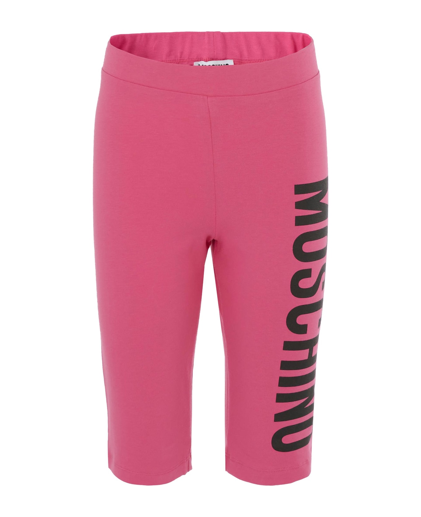 Fuchsia shorts from the Moschino Kids brand, with elasticated waist; they are embellished with a black logo on one leg.