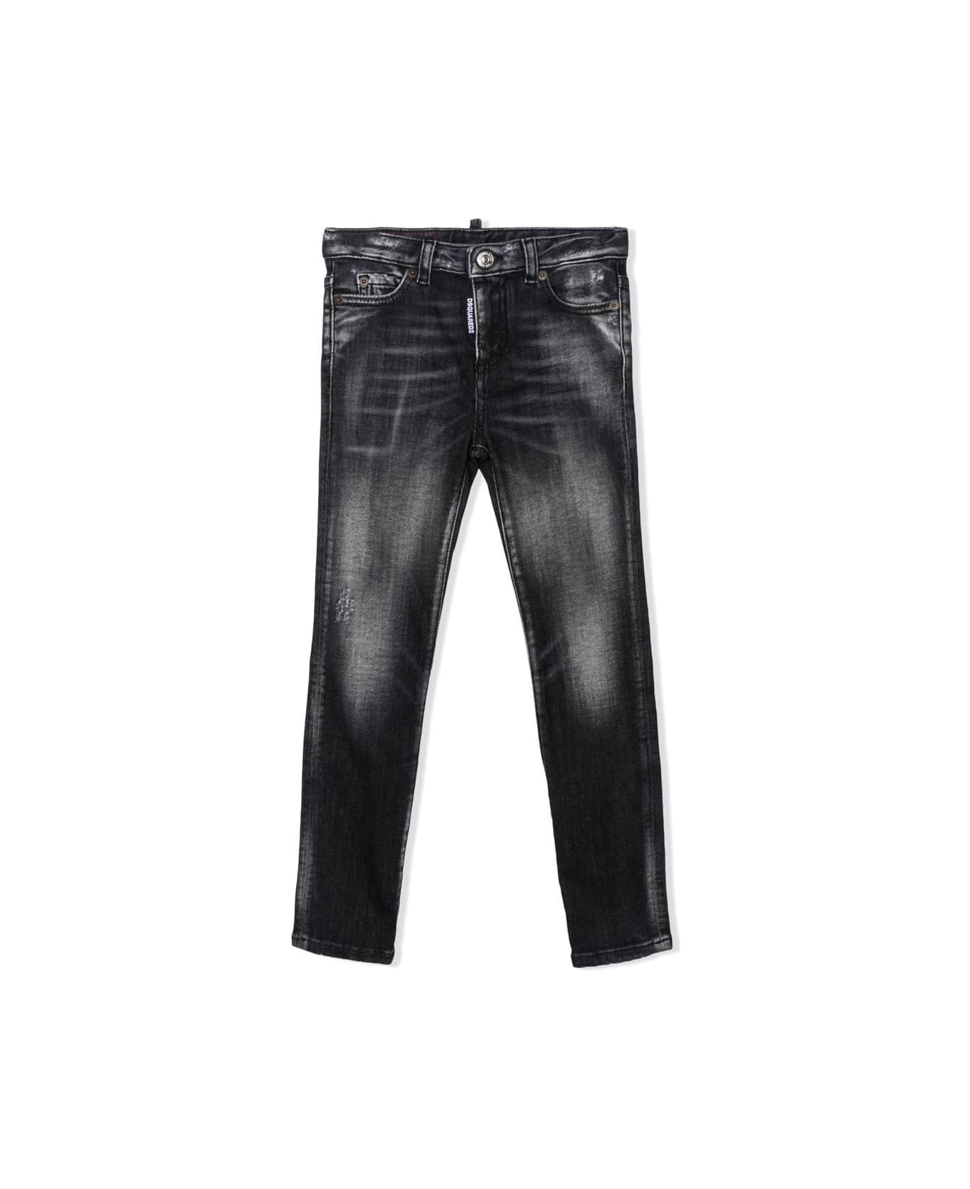 distressed slim-cut jeans from DSQUARED2 KIDS featuring dark grey, stretch-cotton, distressed finish, faded effect, whiskering effect at the thighs, belt loops, front button and zip fastening, classic five pockets and slim cut.
