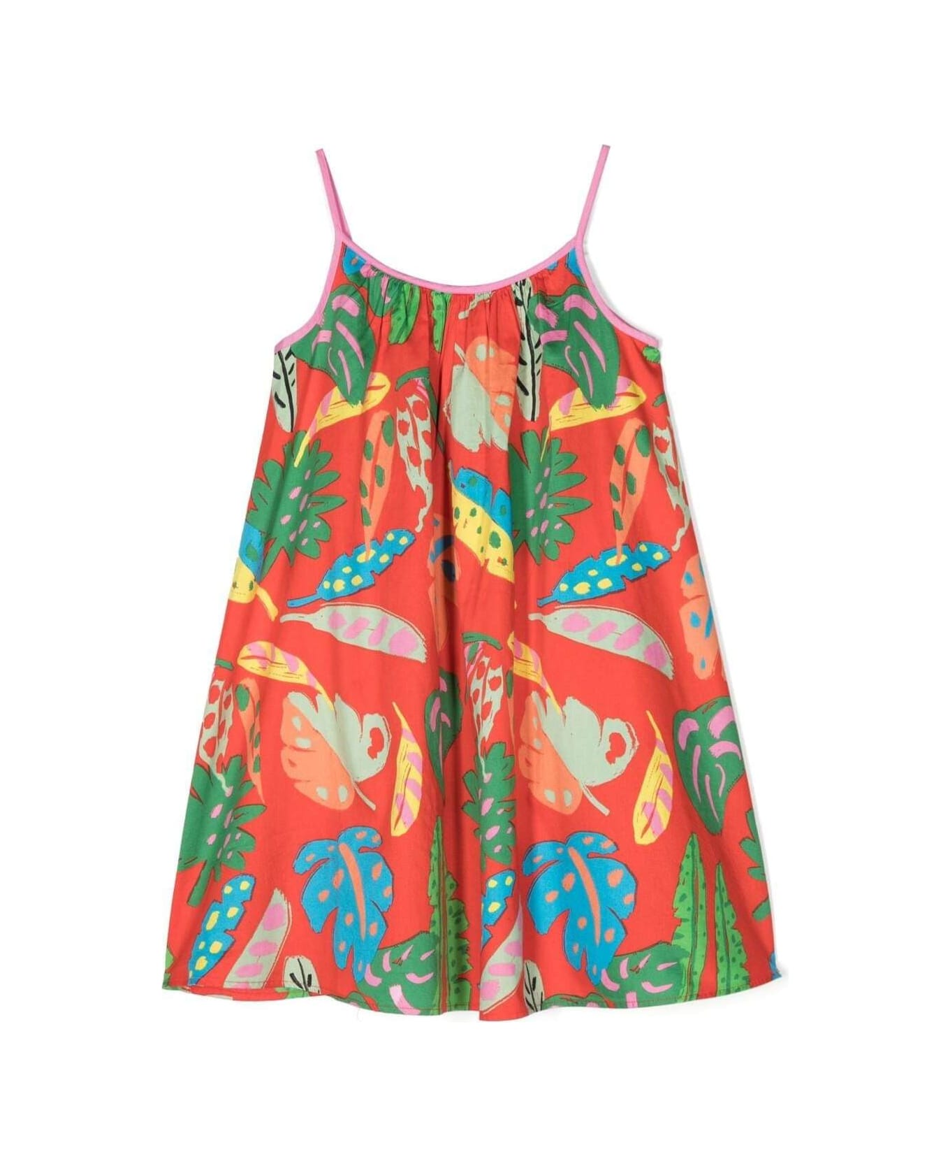 Multicolor All-over Palm Tree Graphic Print Dress In Cotton Girl