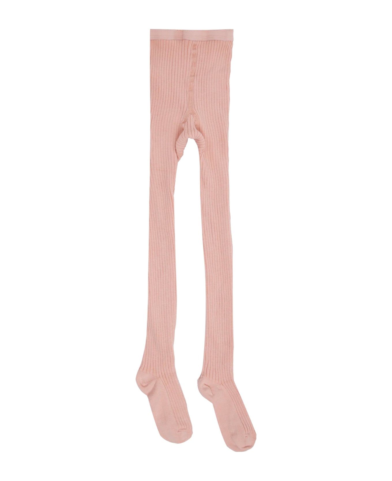 Pink ribbed tights with elasticated waist.