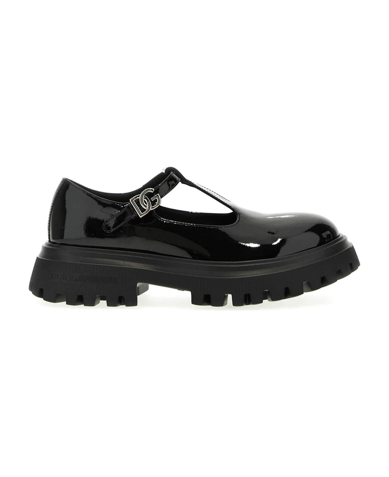 Mary Jane 'Back To School' in patent leather, adjustable strap, rubber sole. Composition: 100% calfskin leather