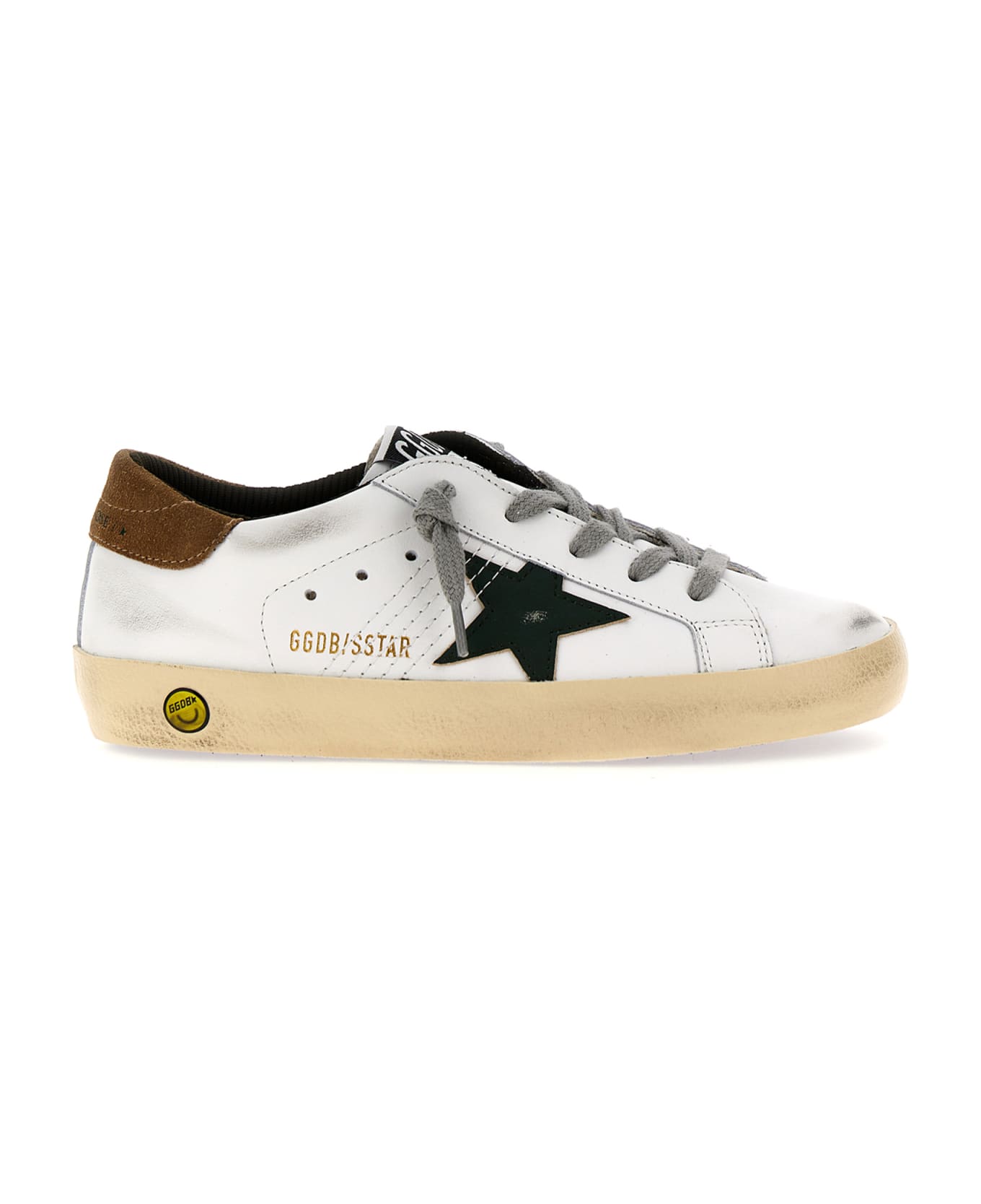 'Superstar' leather sneakers with side star and contrast heel, lace-up closure, rubber sole, used-effect details. Composition: 74% cow leather 26% ovine leather