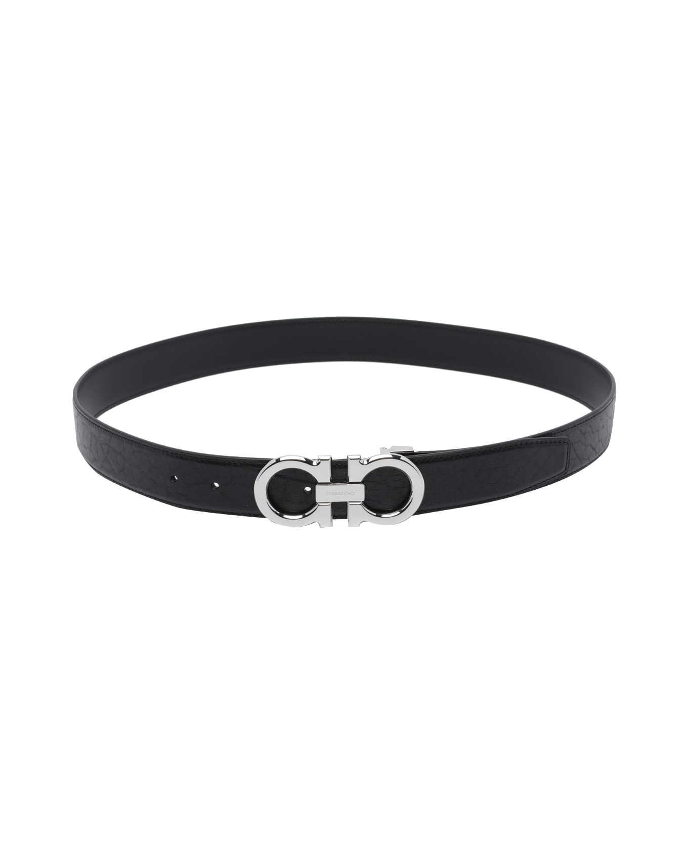 Ferragamo black Gancini reversible belt, frontal logo Composition: 100% Calf Leather