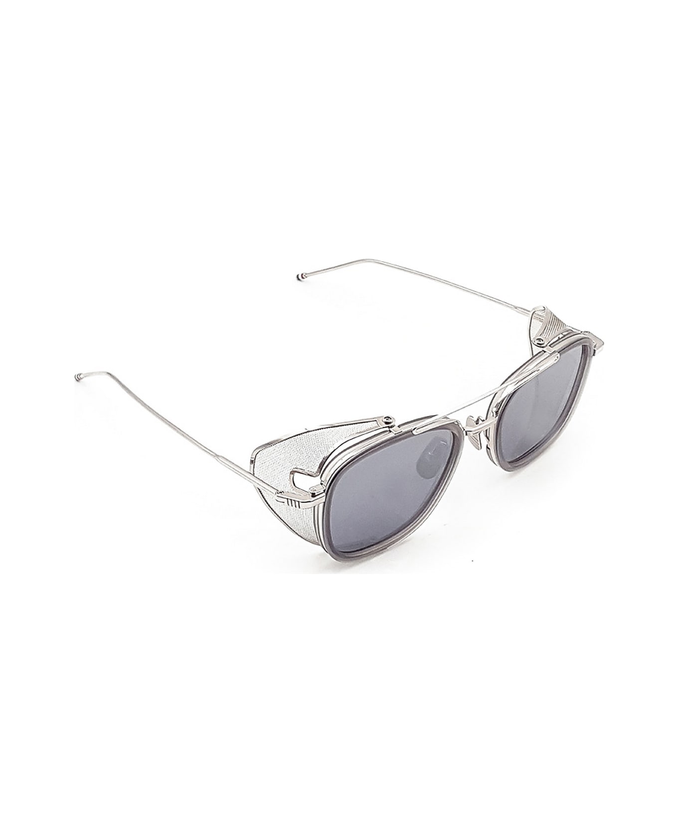 Thom Browne Sunglasses in gray acetate, with double bridge, side shields, dark gray lenses and tricolor detail in the terminal part of the thin titanium temples. Composition: 100% Metal