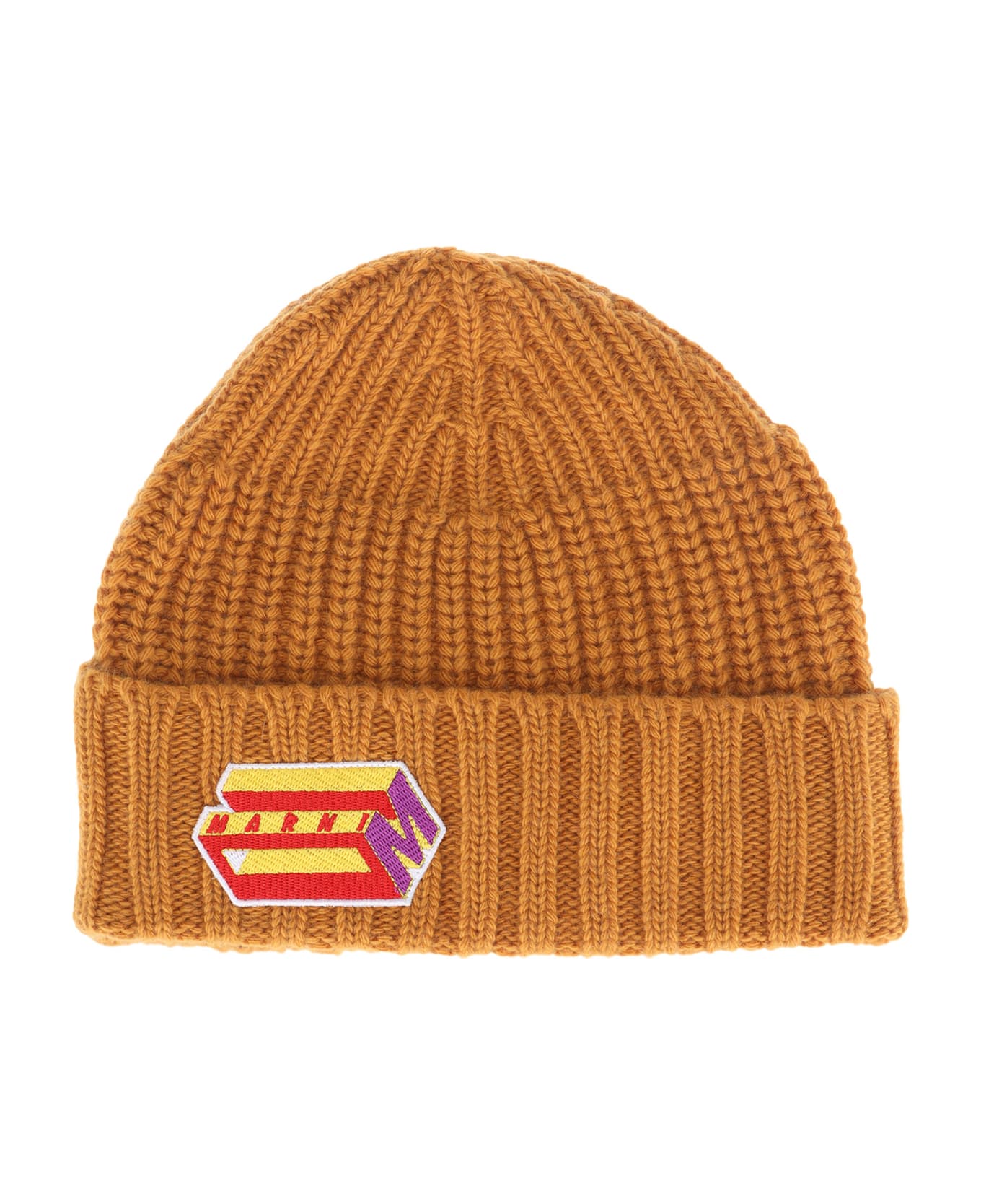 Virgin Wool And Cashmere Blend Beanie With Embroidered Logo Patch By Marni. Featuring:
