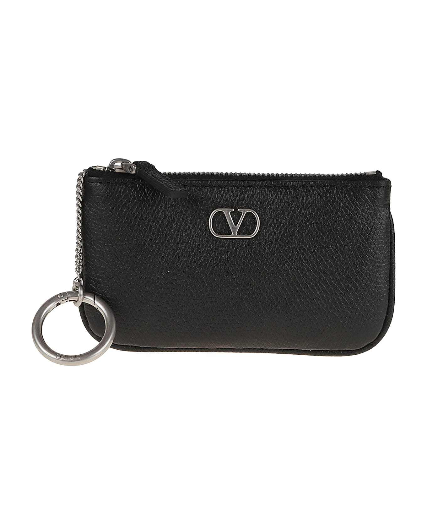 Key ring in textured calfskin by VALENTINO GARAVANI. Top zip closure; key hook. Featuring VLOGO SIGNATURE.