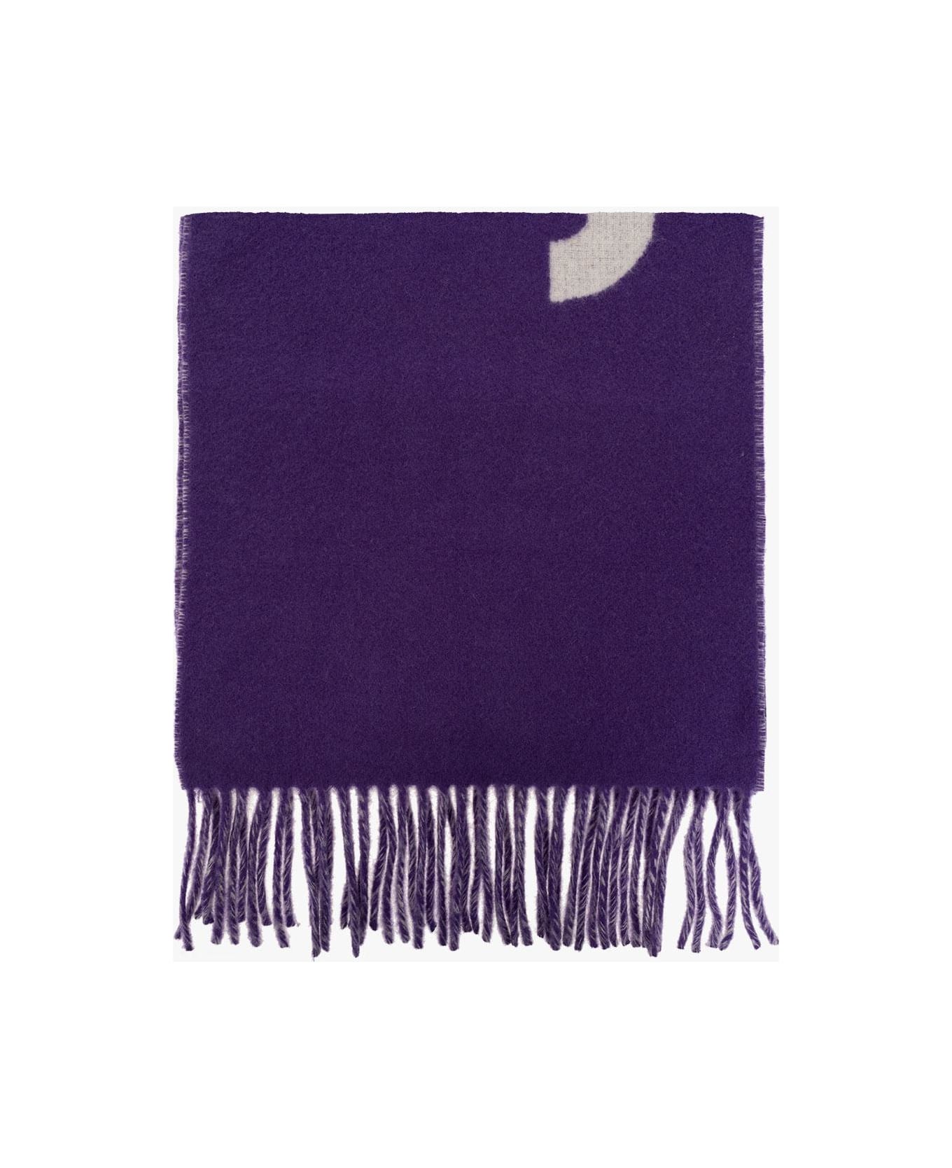 Purple scarf from Jacquemus. Crafted from virgin wool, this item showcases a white logo and fringed edges. Composition: 100% Virgin Wool