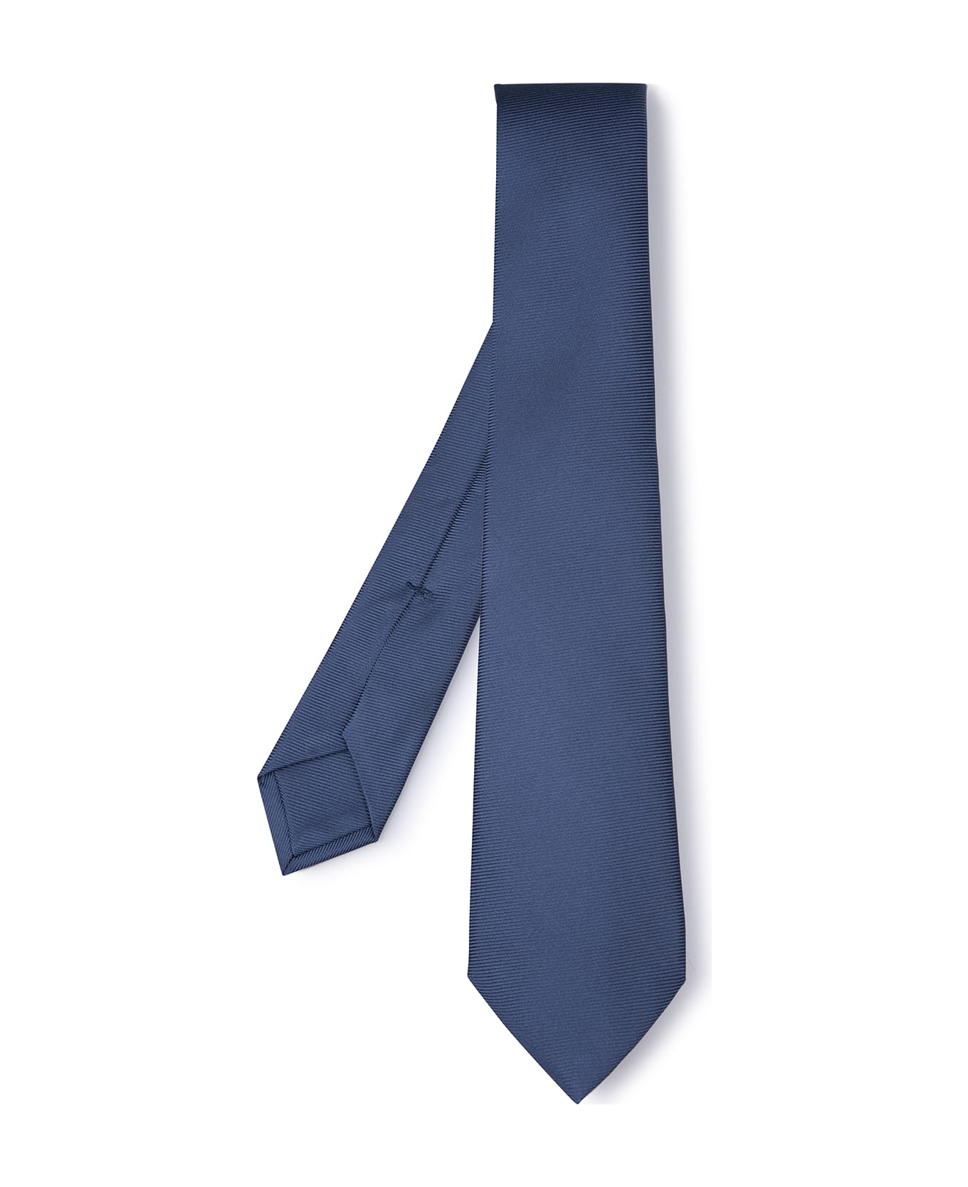 Refined Kiton men's tie made of fine dark blue silk woven with a weave of thin horizontal stripes. Composition: 100% Silk