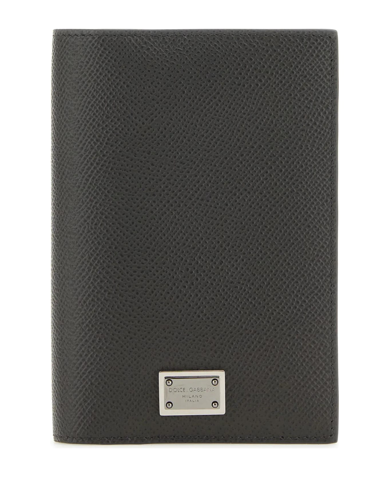 Passport holder realized in grained calf leather enriched by metal logoed plate at the front.