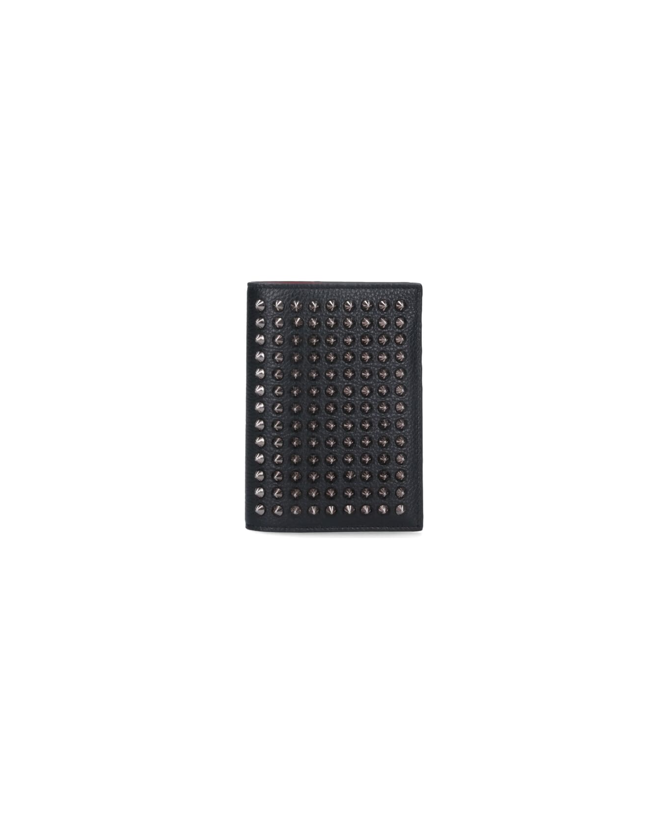 Christian Louboutin 'Funky' passport holder in black calf leather with silver metal studs on the front, logo embossed on the back, four inner card slots, an inner flat pocket. Composition: 100% Calf Leather