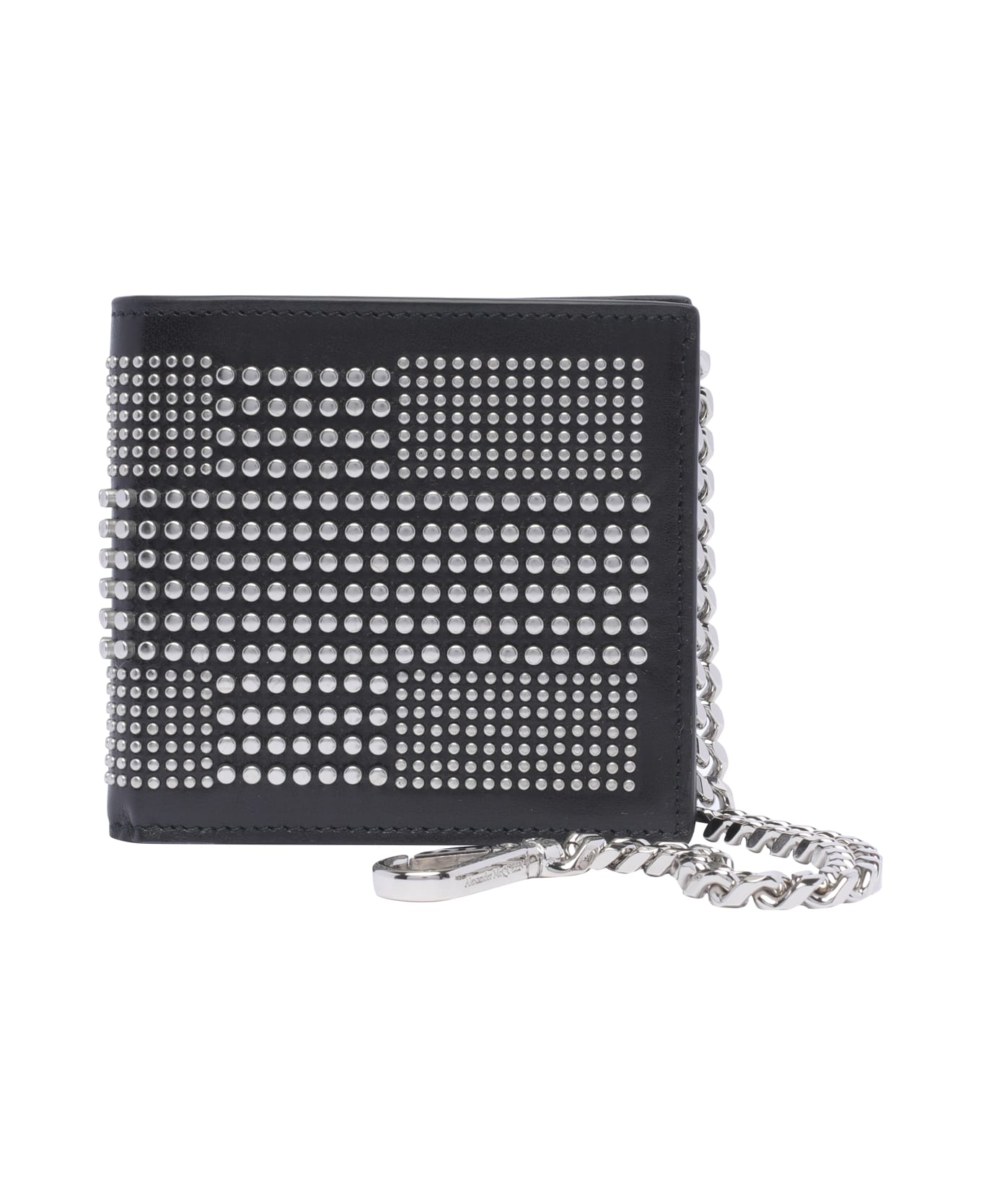 Alexander Mcqueen black Studded chain Wallet, clip closure, 2 notes sections, 2 pockets, 8 slots, studs all over, chain detail Composition: 100% Calf Leather