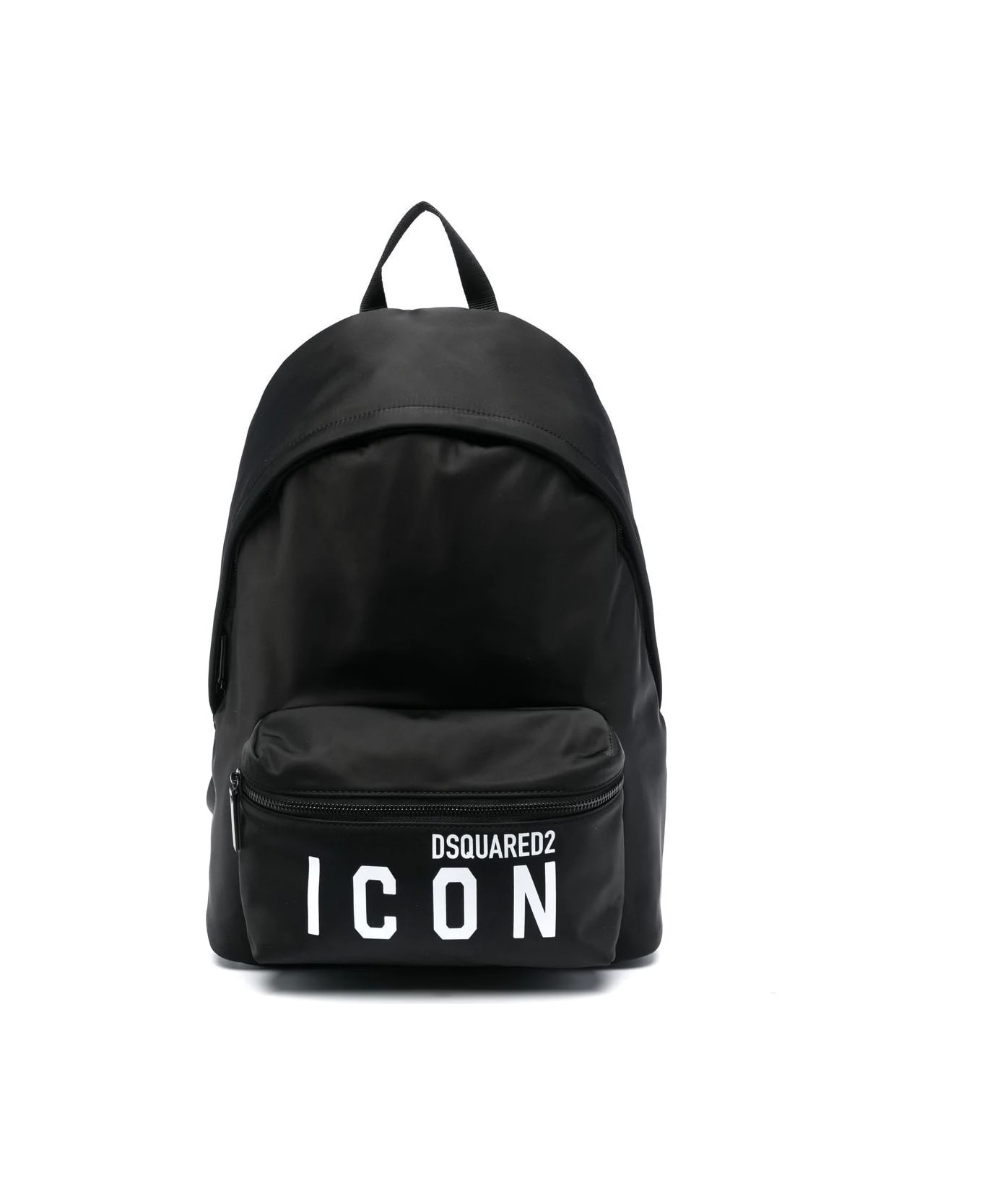 Dsquared2 backpack made of black nylon with top handle, adjustable shoulder straps, zip fastening, single internal compartment, one zipped pocket, one zipped front pocket, logoed internal label and contrasting "Dsquared2 Icon" lettering print.
