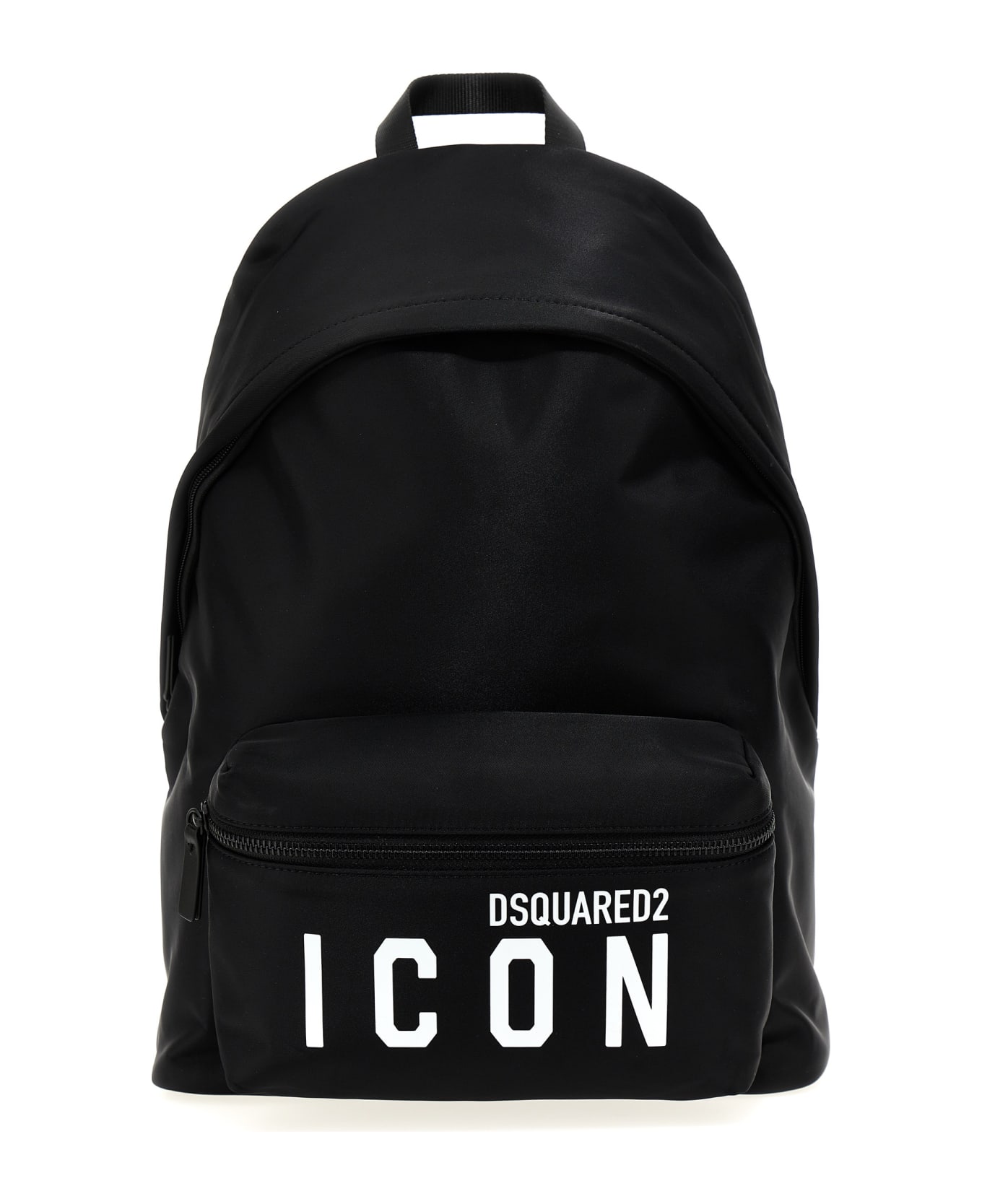 Be Icon' nylon backpack with logo print, outer zip pocket, zip closure, adjustable shoulder straps. Composition: