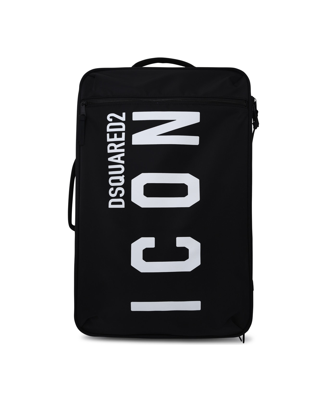 Rigid rectangular model, on top handle, logo print on the front, one zippered pocket on the front, one inner compartment with tie-down straps, a side handle, address plate, expandable zipper, two wheels, round handle. \n52 x 35 x 24 cm