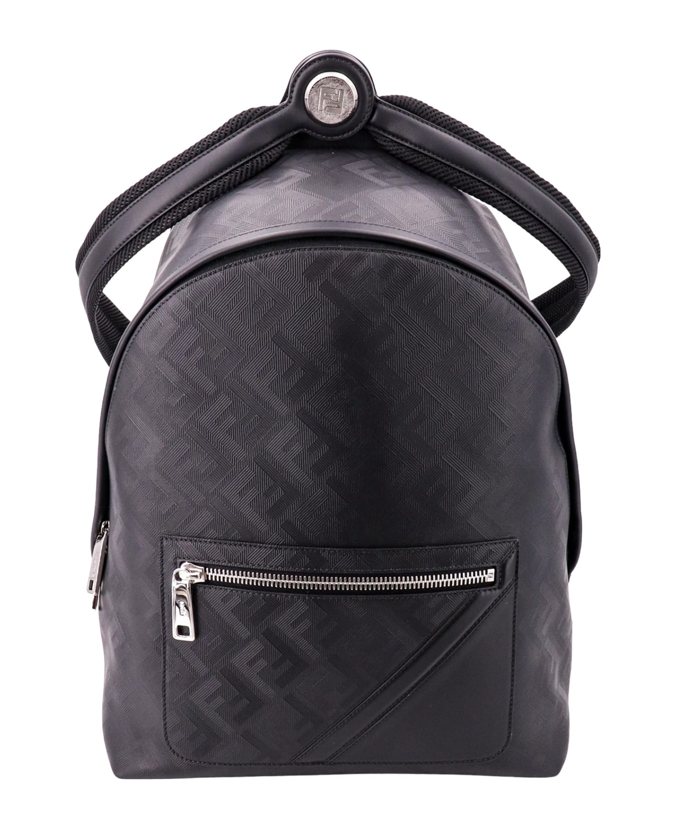 Leather backpack with all-over FF motif and metal nail - Closure With Zip And Double Slider - Adjustable Straps And Ergonomic Backrest - External Pocket With Zip - Made In Italy - Leather