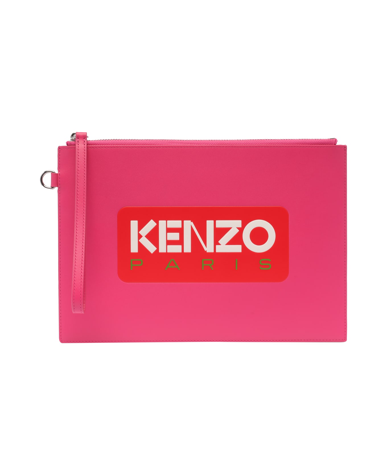 Kenzo pink big clutch with zip closure, wrist strap, one inner slot, one external open pocket, frontal logo Composition: 100% Calf Leather