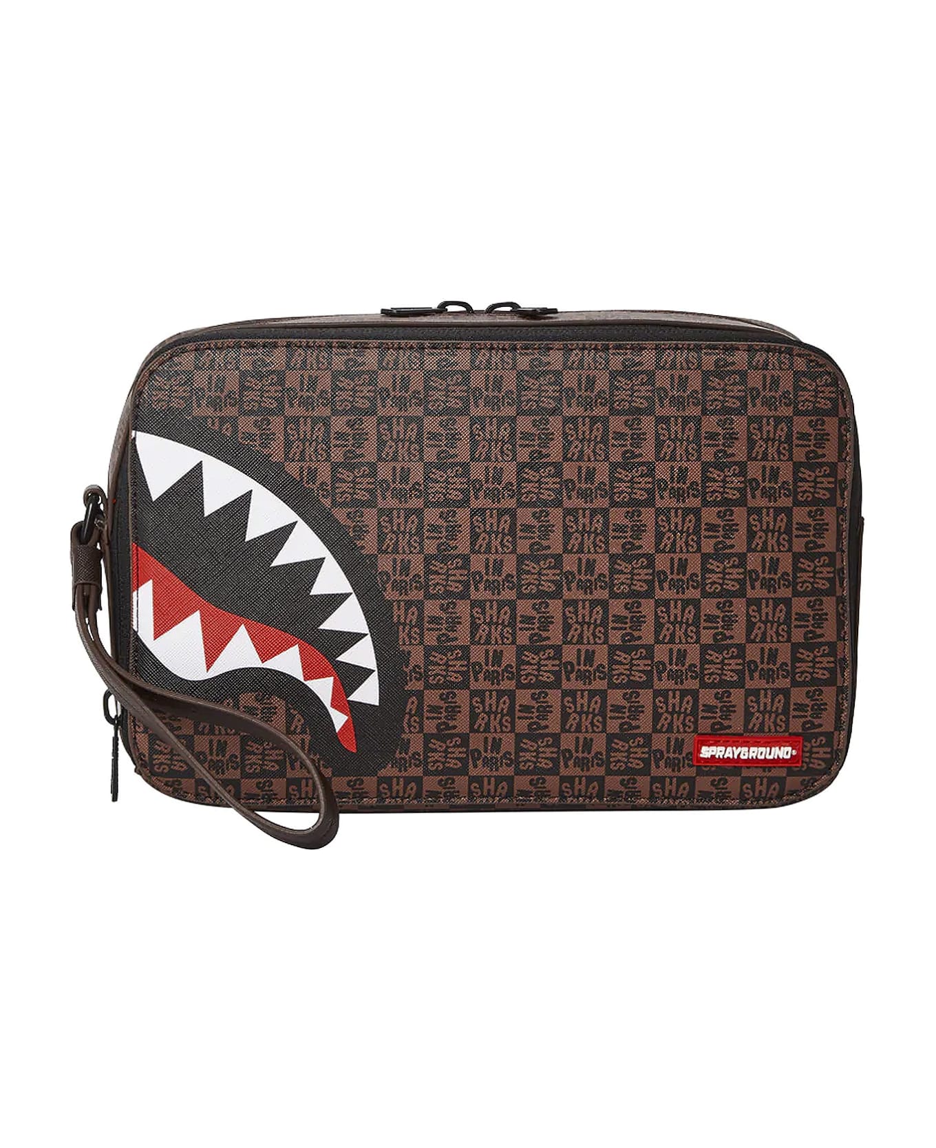 Coated canvas beauty case with Shark in Paris check motif - Double Compartments With Zip Closure - Detail With Handle - Iconic Shark Print - Internal Pocket With Zip - 100% Pvc
