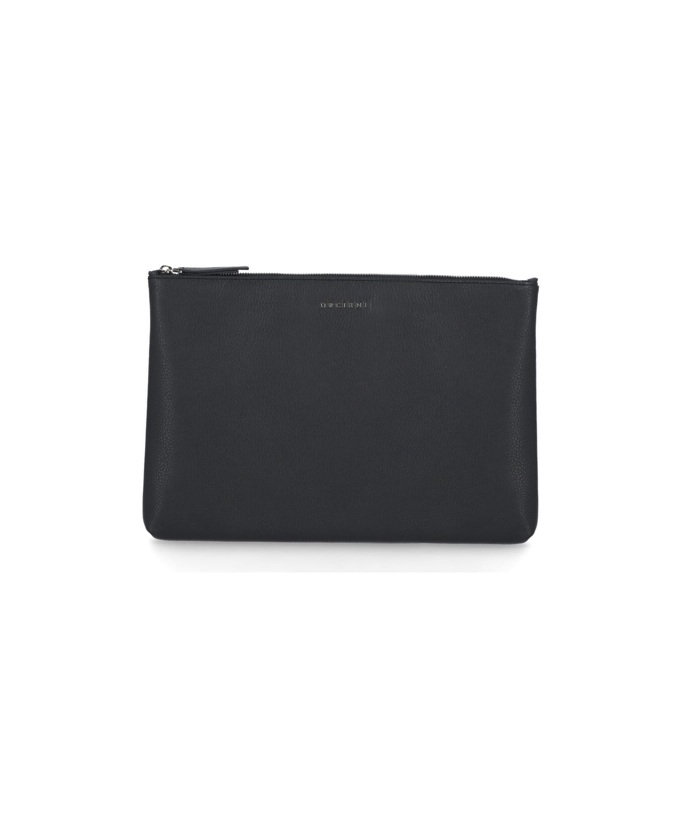 Micron Pebbled Leather Document Case from Orciani: - Black Orciani pebbled leather document case for man