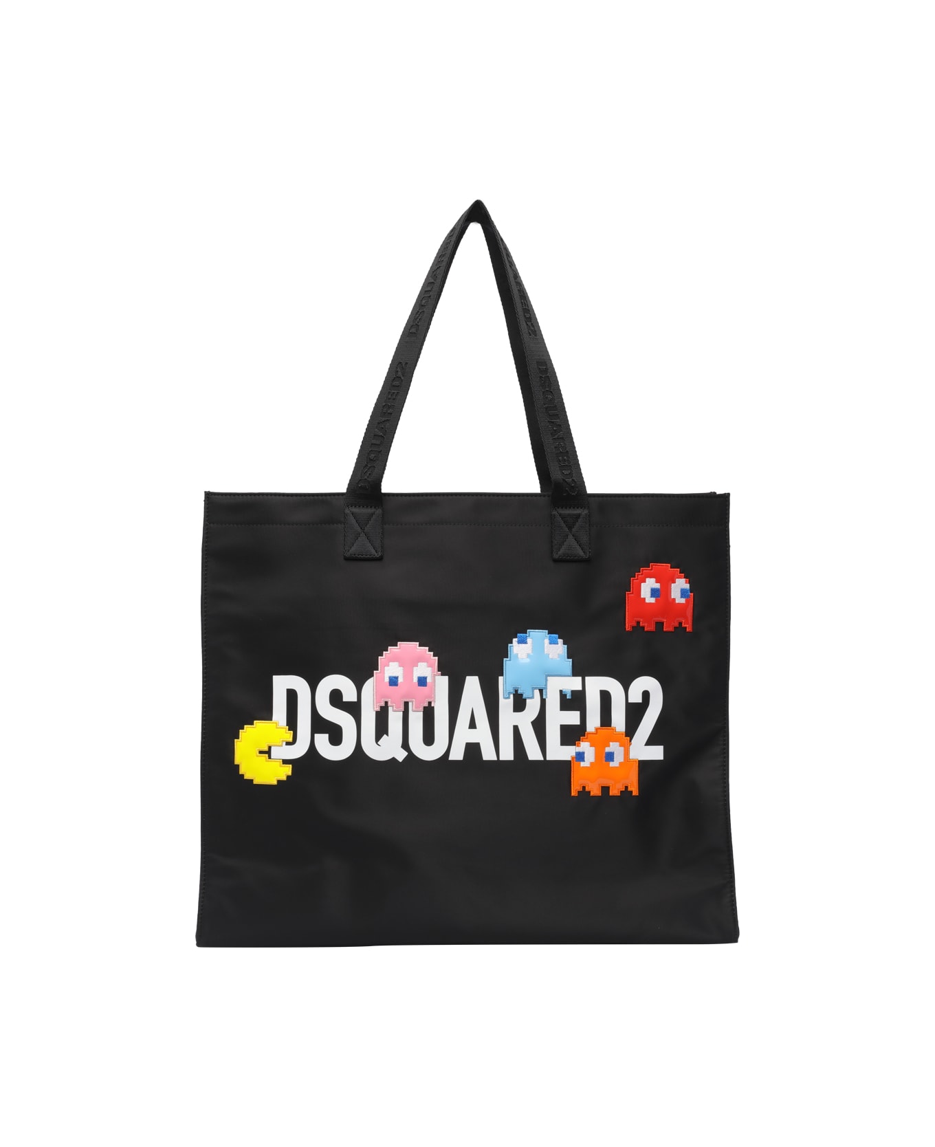 Dsquared2 black Pac-Man tote bag, inner zipped and open pocket, 2 handles, frontal logo and print Composition: 95% Polyamide, 5% Calf Leather