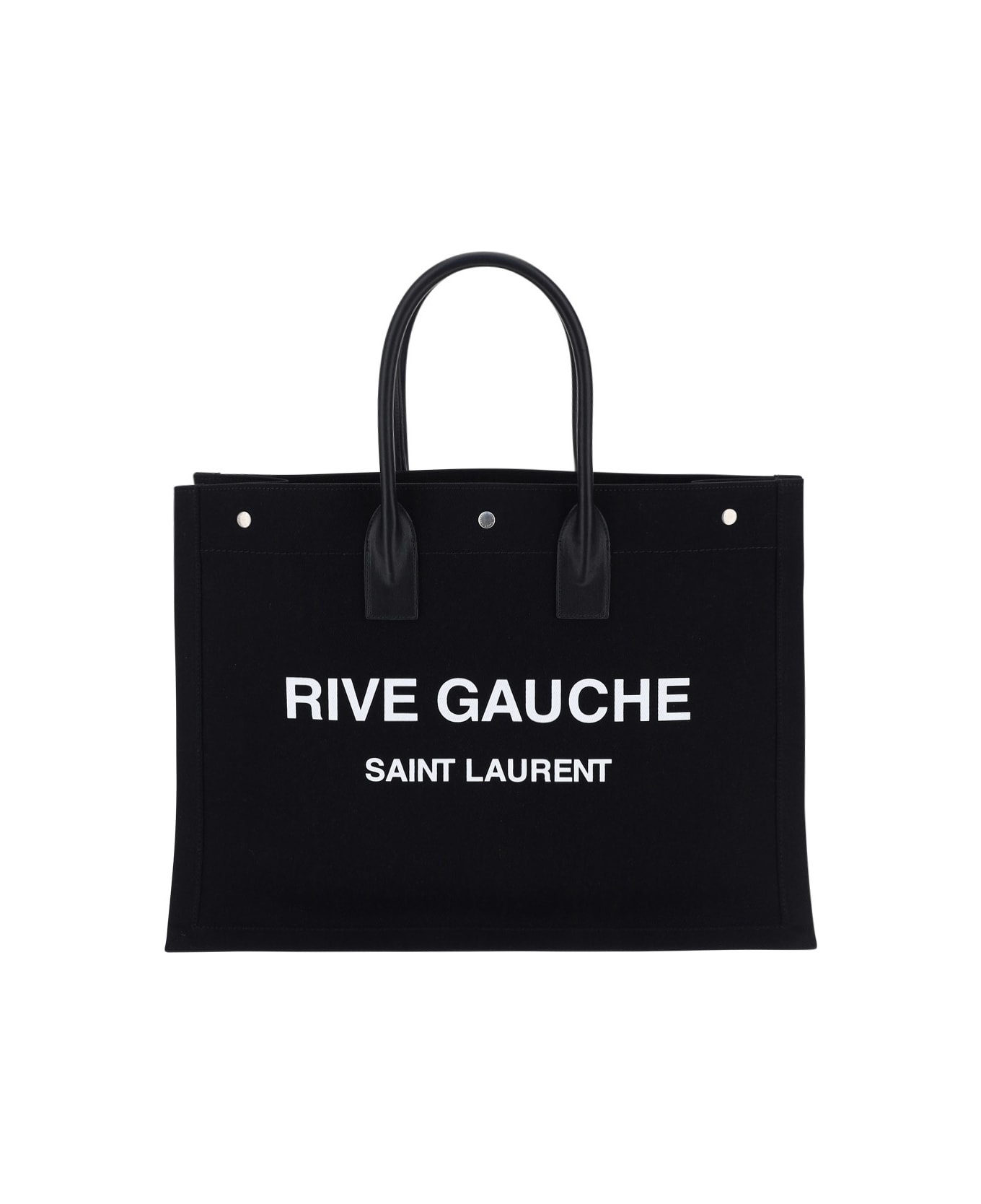 Cotton Rive Gauche Tote Bag By Saint Laurent, Contrasting Leather Double Handle, Iconic Brand Monogram Printed In Contrast On The Front, Three Snap Button Closure, Interior Welt Pocket With Zipper. composition: 100% % Cotton