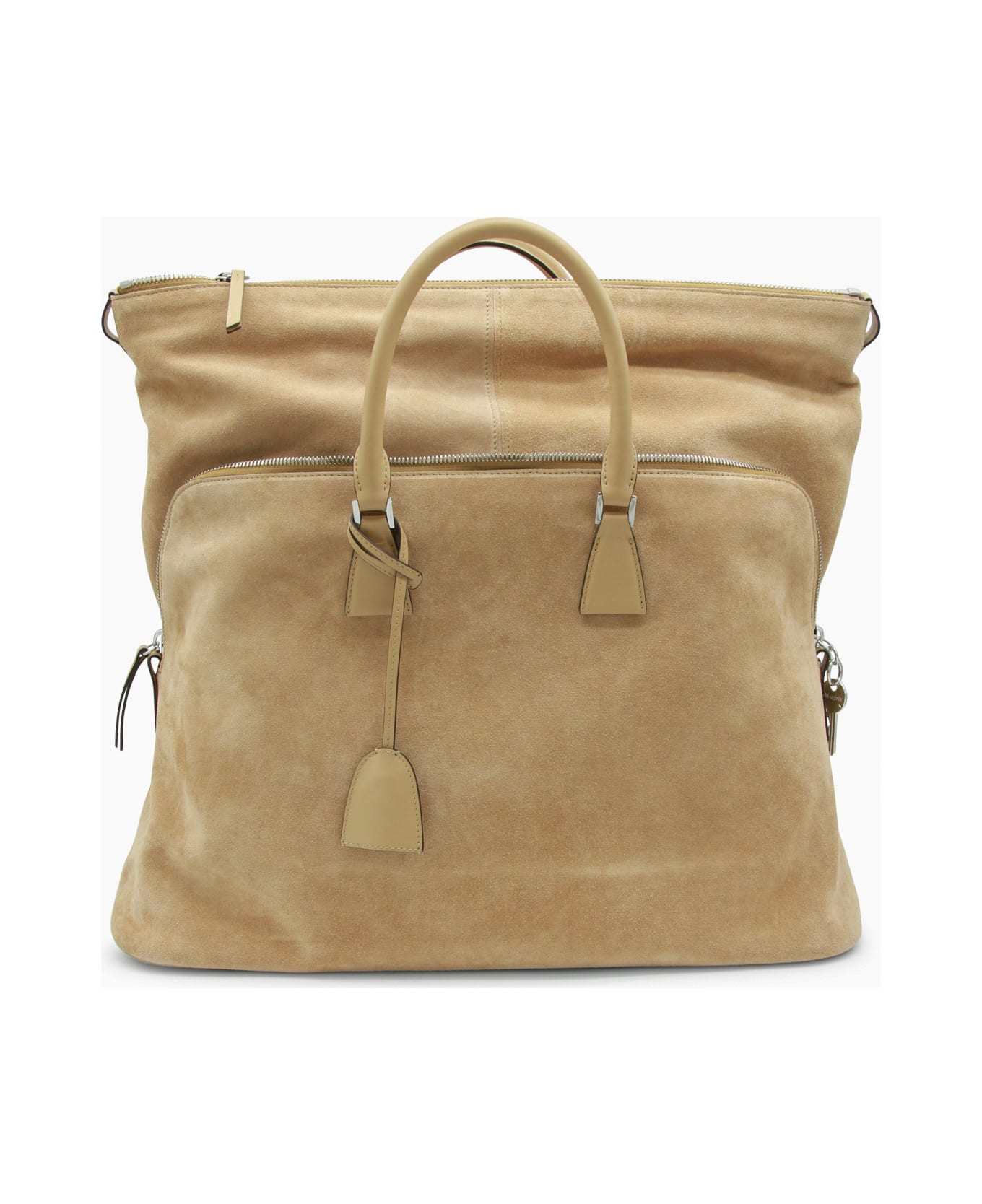 Sand 5AC top handle bag from Maison Margiela featuring top handle bag, upper fastening fastening, suede, pockets and silver tone hardware. Composition: _, 100% Pbv