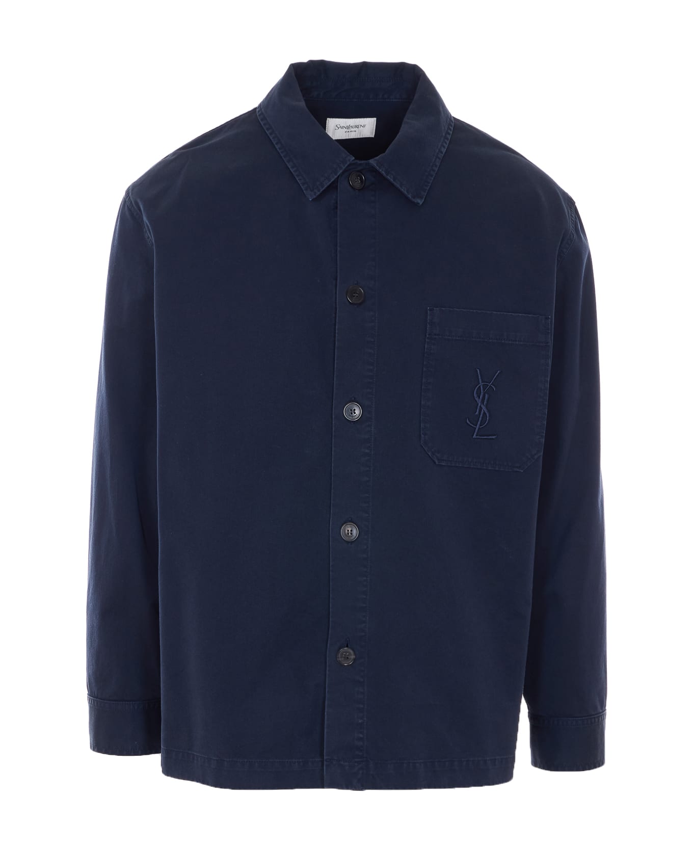 Saint Laurent blue Cassandre overshirt jacket with frontal buttons closure, regular collar, long sleeves Composition: 100% Cotton