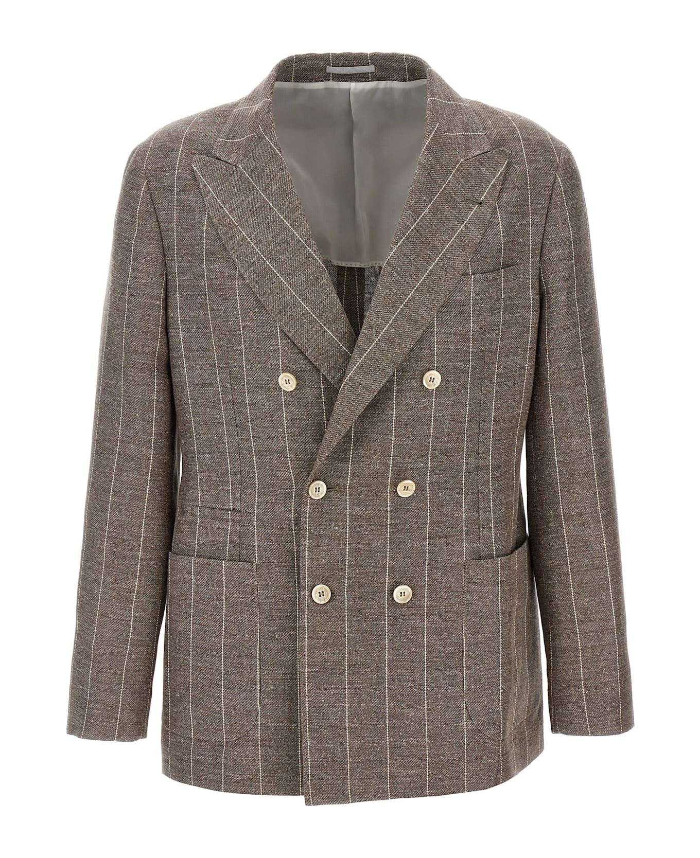 Deconstructed blazer in wide pinstripe canvas of linen, cotton, silk and wool from the