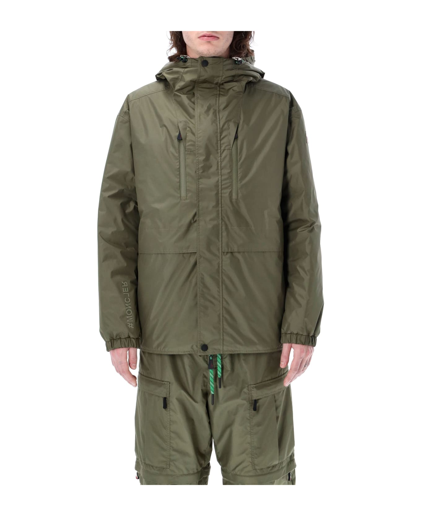 Leuk Reversible Short Down Jacket By Moncler Genius Grenoble. Featuring: Adjustable Hood Reversible Zip Closure Concealed By A Front Flap With Hook-and-loop Closure Zipped Pockets Reversible Down-filled Bonded And Embossed Lettering Elastic Cuffs The Model Is 1,90 M Tall And He's Wearing Size 4