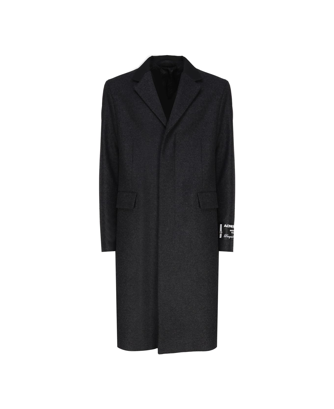 Dark grey Single-breasted Coat In Wool Blend from Acne Studios -Made of heavy wool blend with felted and smooth effect -Regular fit -Long cut -Single-breasted -Contrasting ottoman faille collar -Hidden closure at the center on the front -Two welt pockets with flap -Seasonal Acne Studios couture label -Full lining -Colour : Dark gray -80% Wool, 20% Nylon