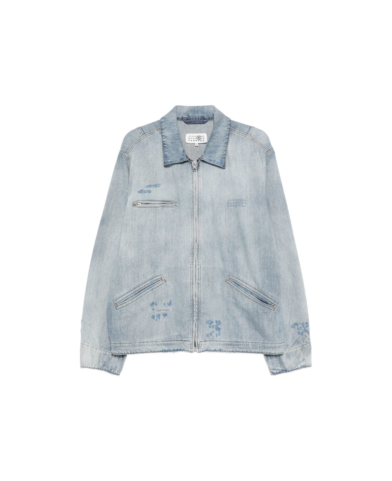 blue zip closure chest pocket front jetted pockets logo embroidery
