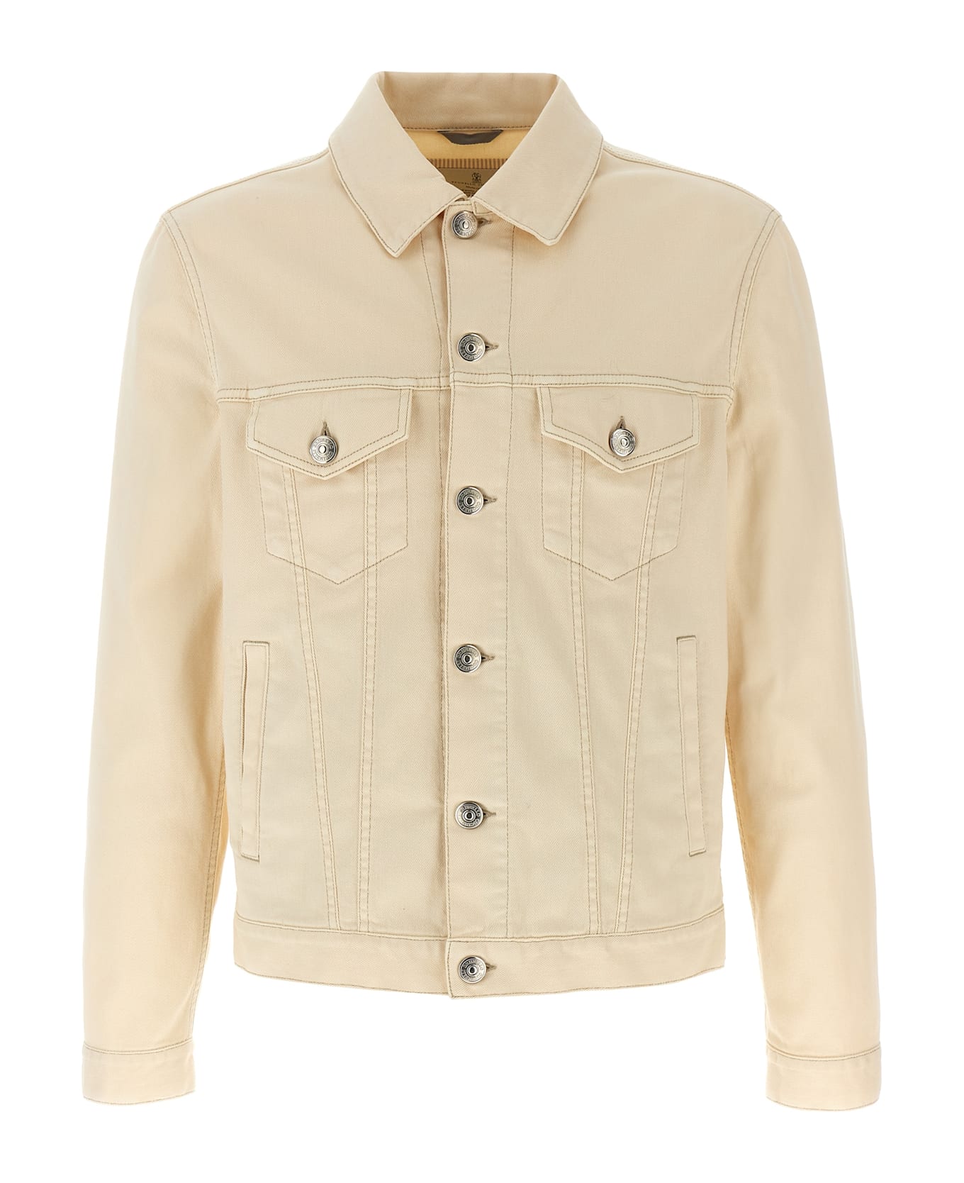 Comfort cotton dyed lightweight denim jacket, contrast stitching, shirt collar, front button closure, high patch pockets with flap and button, low vertical pockets, long cuffed sleeves. Composition: 99% cotton, 1% elastane
