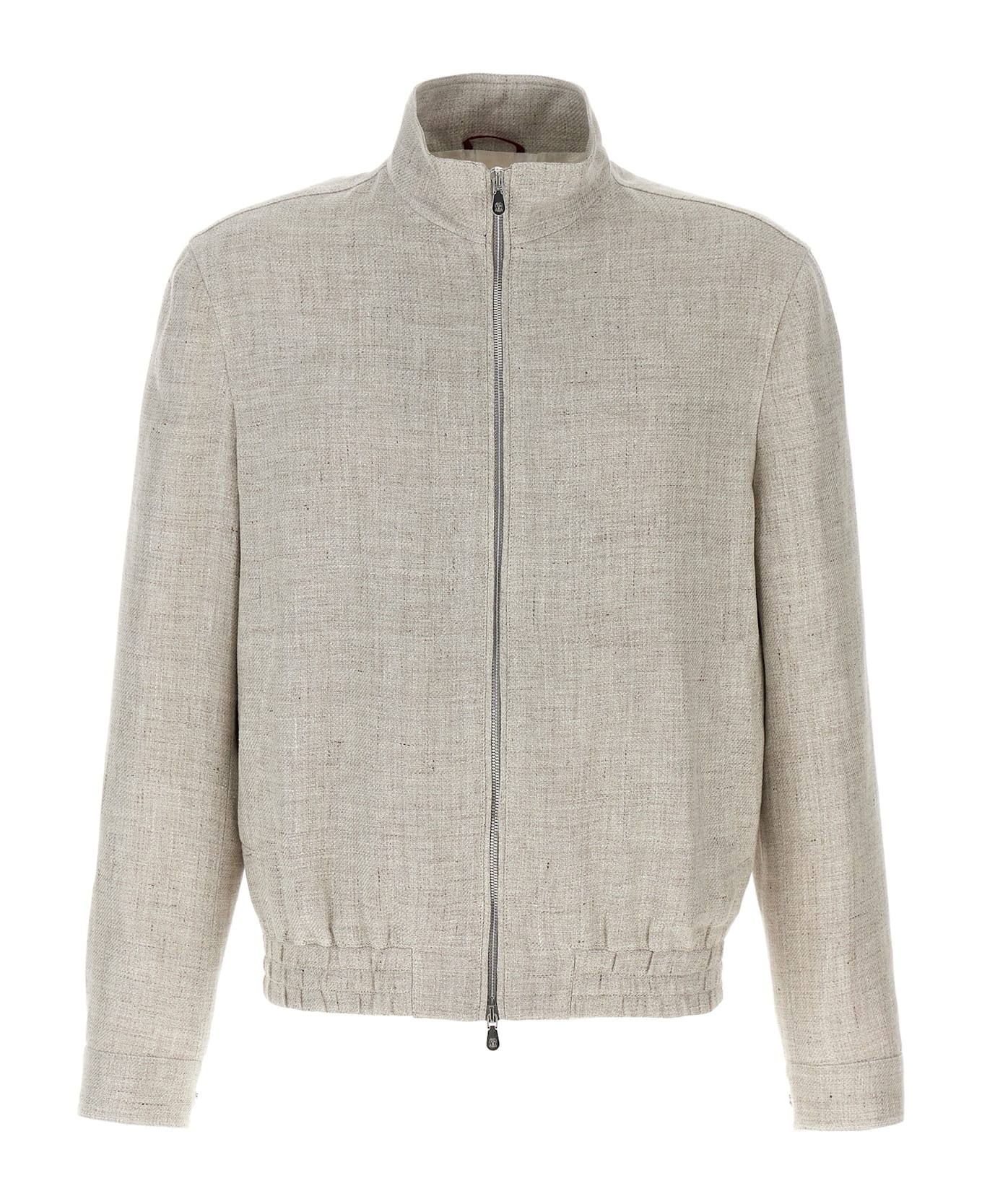 Diagonal wool and silk linen bomber jacket, standing collar, front zip closure, low pockets with snap button, Paisley print cupro lining, two inner pockets with button and a pen holder, long sleeves with snap button cuffs, elastic at the hem.
