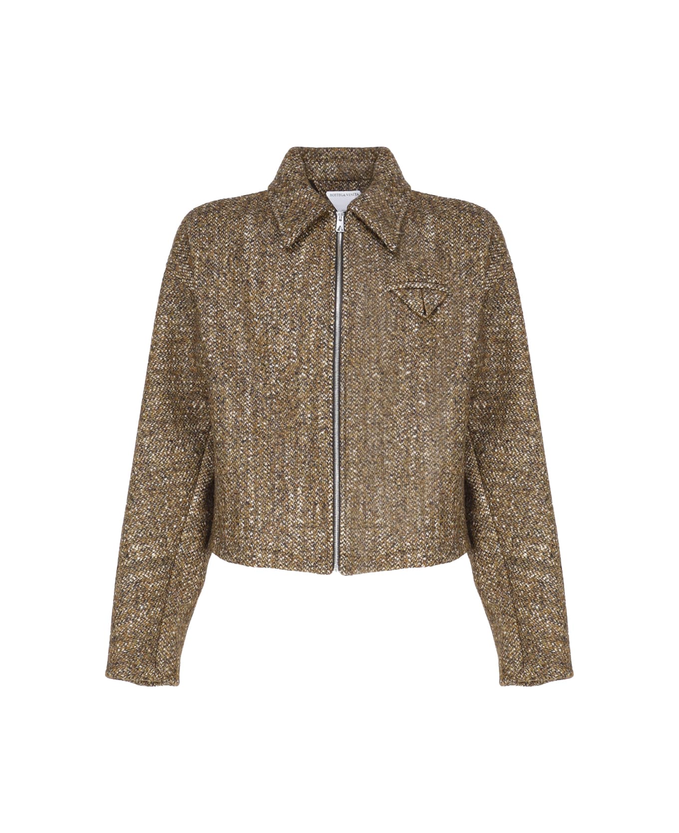 Ochar/grey Kimono Jacket In Spotted Textured Wool from Bottega Veneta -Spotted wool felt jacket -Kimono back construction -Zip closure -Fully lined -Regular fit -Made in Italy -Colour: Ocher/Grey -69% Wool, 16% Polyester, 12% Alpaca wool, 3% Polyamide