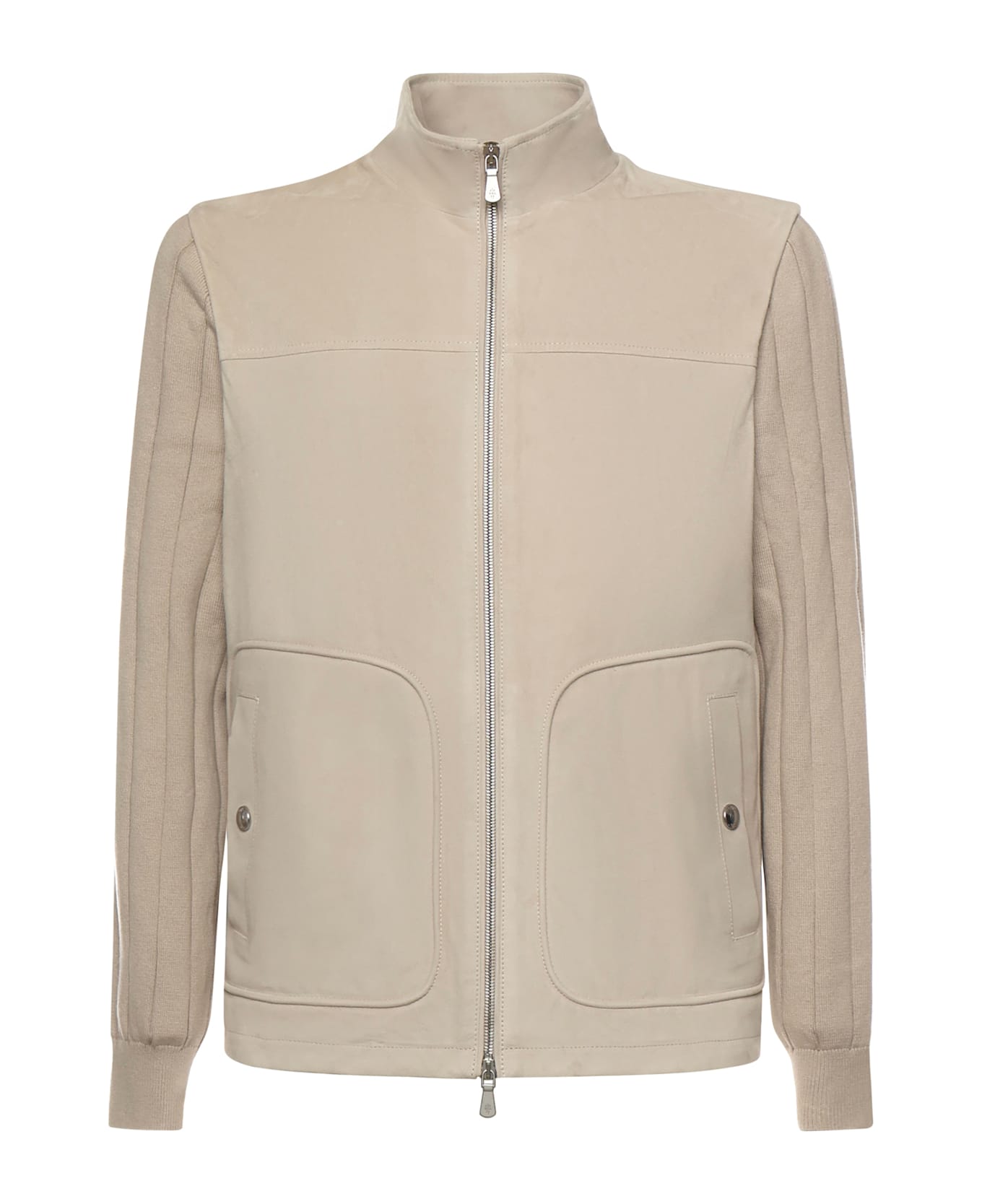 - Double-slider zip closure - Snap-button pockets - Long sleeves - Regular fit - Made in Italy - Size shown is 46 - Color: Sand