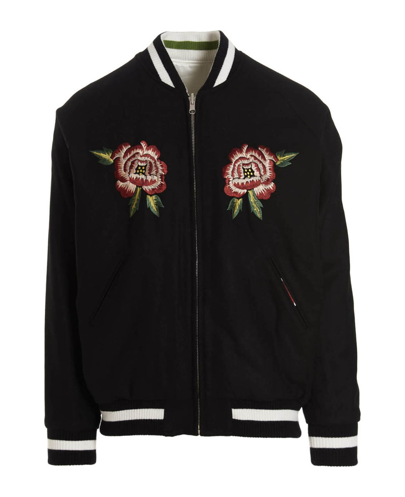 'Gracia' reversible wool cloth bomber jacket on the one side and in cupro on the other, n all-over embroidery, zip closure, pockets and long cuffed sleeves. Composition: