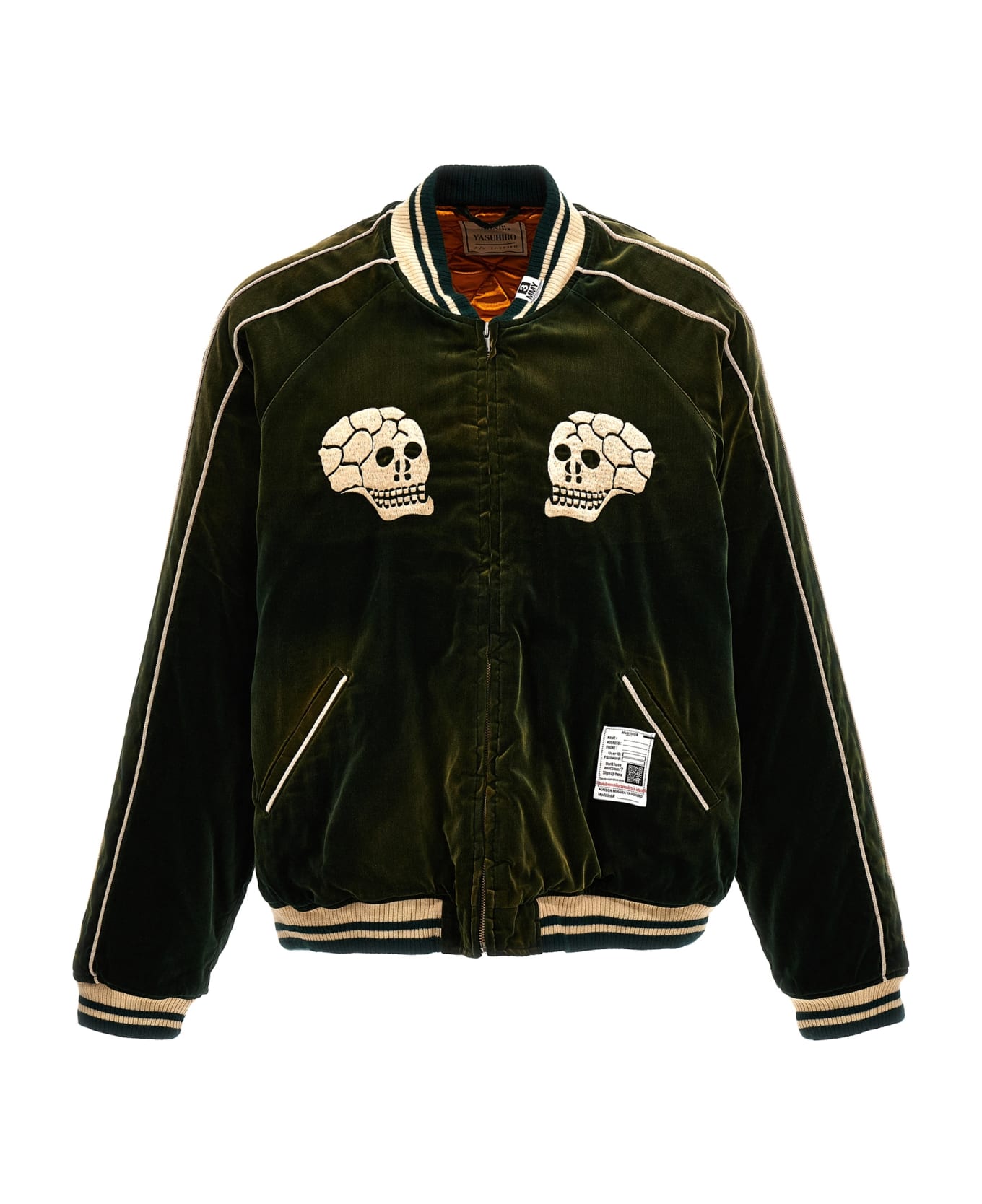 Souvenir' velvet bomber jacket with quilted lining, embroidery on the front and back, pockets, long sleeves with knitted cuffs. Composition: 100% cotton