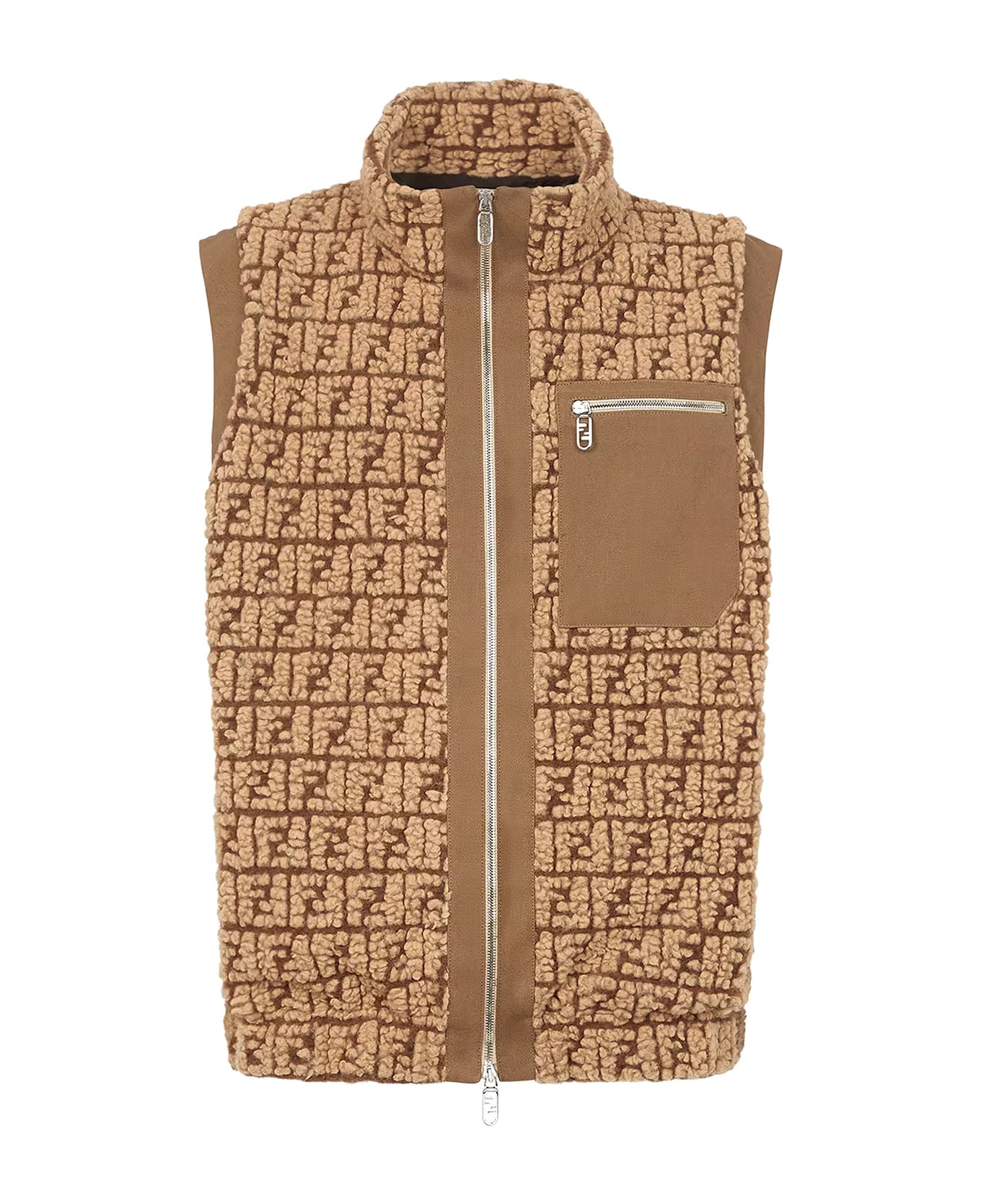 Teddy fabric sleeveless jacket with all-over FF motif