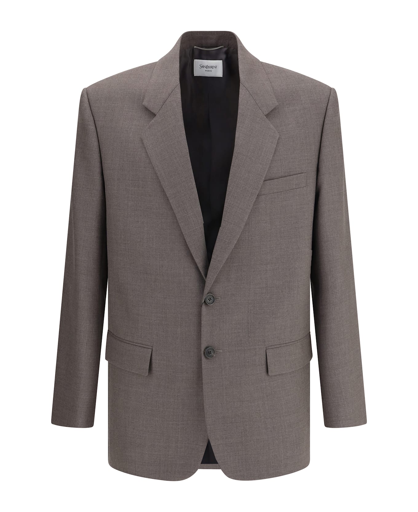 Saint laurent's wool blazer jacket is an elegant and versatile piece featuring classic lapels and a single-breasted button closure. on the front, it features two flap pockets and a welt pocket for a touch of practicality and style. the back slit adds comfort and greater freedom of movement. made of high-quality wool, this jacket is perfect for sophisticated and timeless looks.