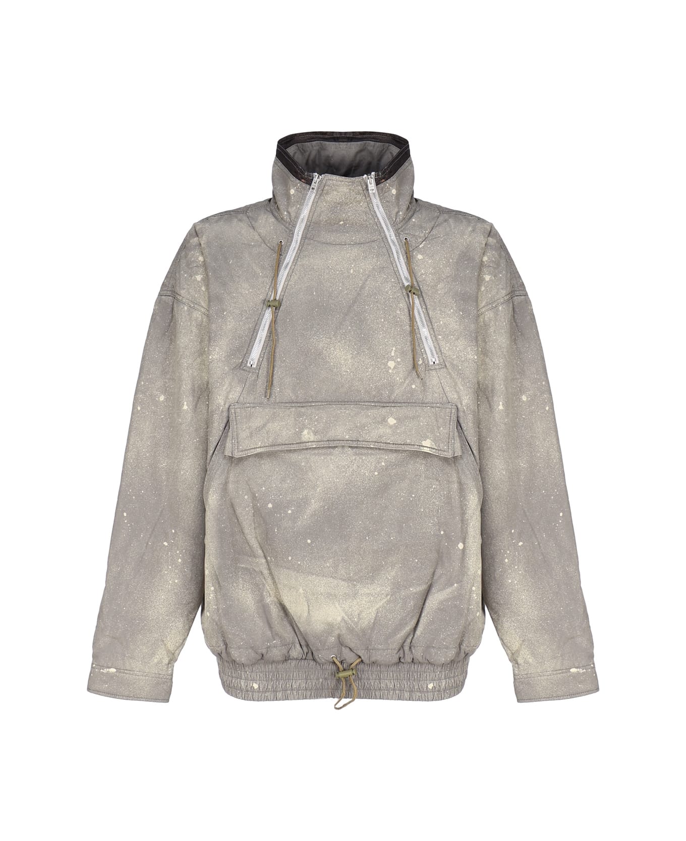 Grey 1/3 Zip Hooded Jacket from Acne Studios -Relaxed fit -Hip length -Packable hood-1/3 zip closures -Patch pocket with flap and side openings -Seasonal Acne Studios leather logo -Fully lined -Color: Grey -100% Cotton