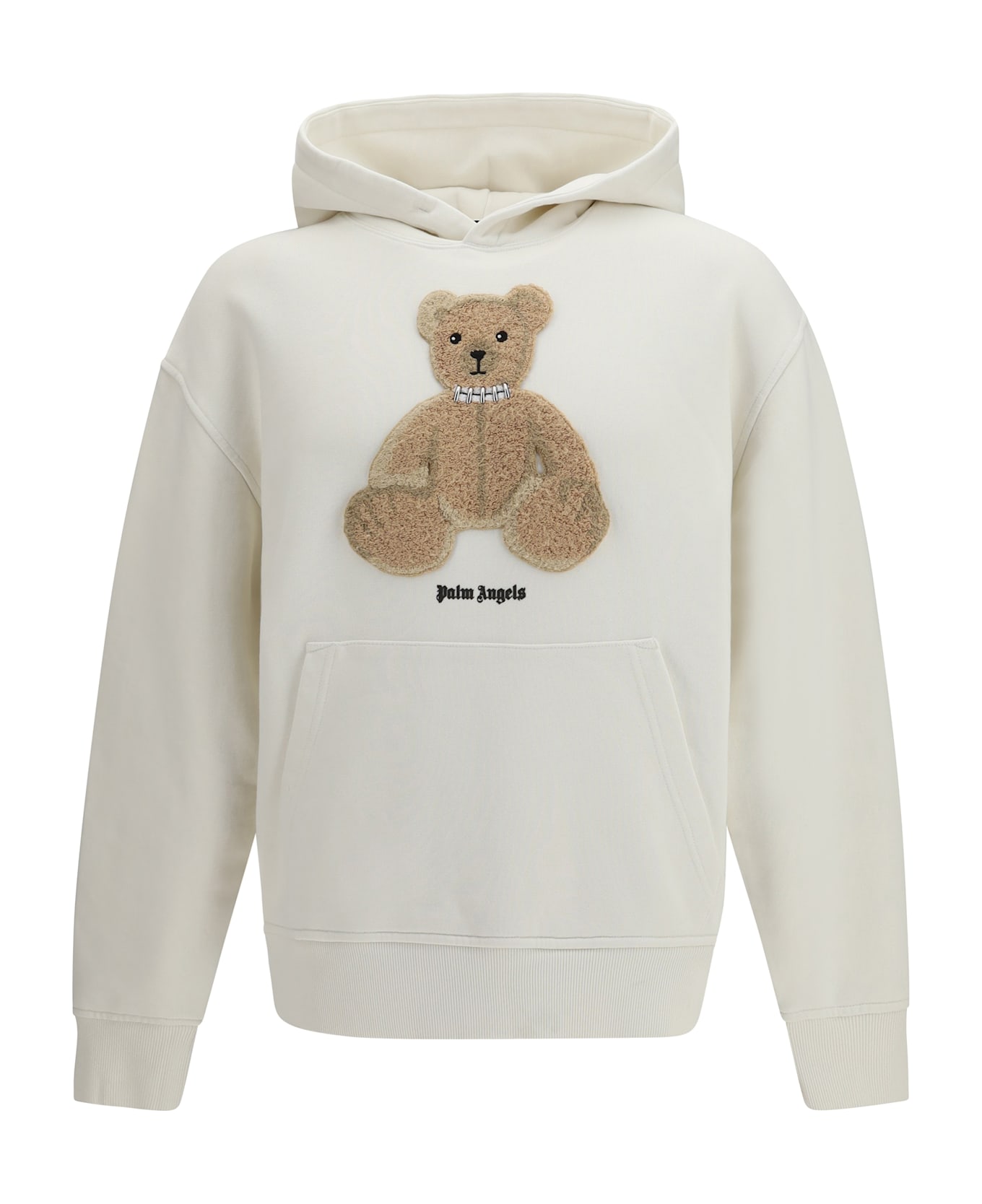 The bear hoodie by palm angels stands out for an essential silhouette that interprets streetwear with a contemporary attitude. the hoodie model by palm angels features a regular fit and a hood that define the structure of the garment. the textured bear graphic on the front introduces a distinctive and dynamic element, paired with a logo print. a kangaroo pocket and ribbed hem and cuffs complete the bear hoodie by palm angels with a practical and versatile silhouette.